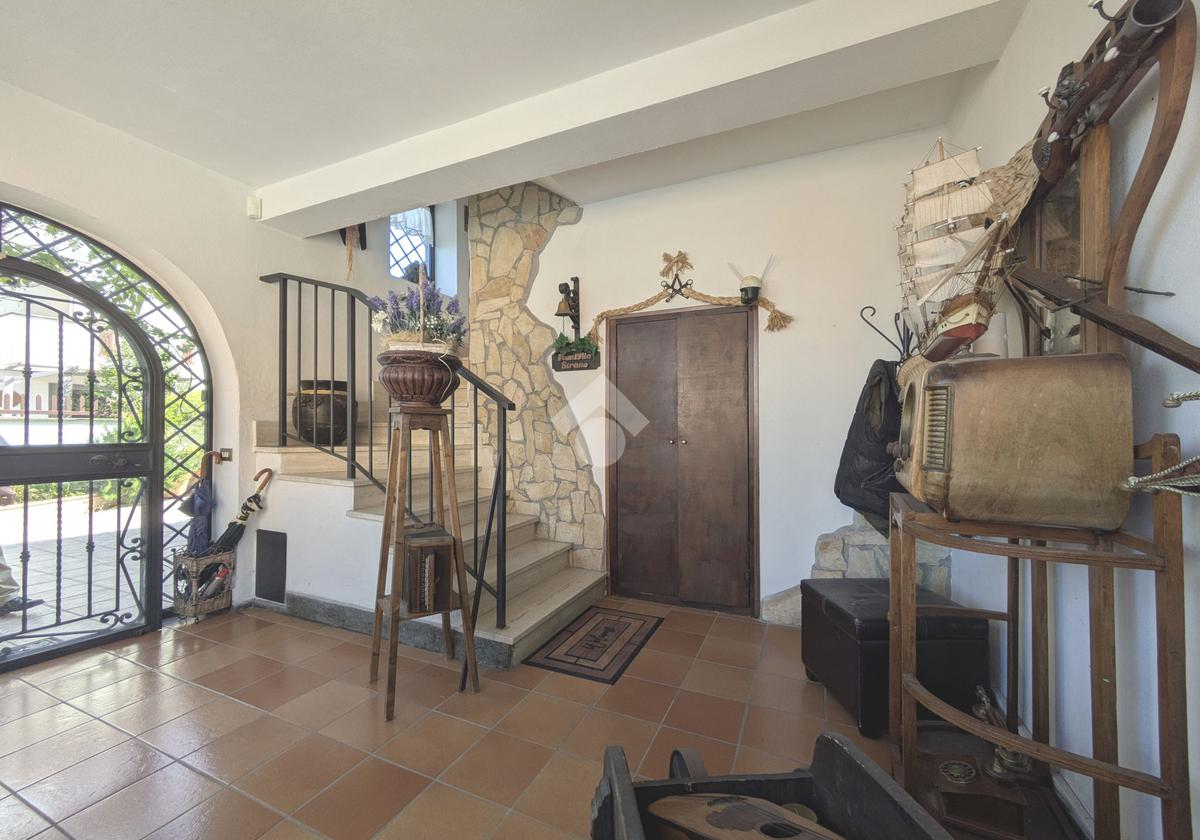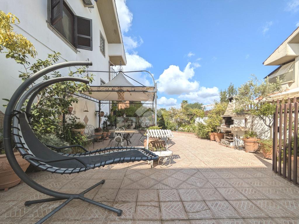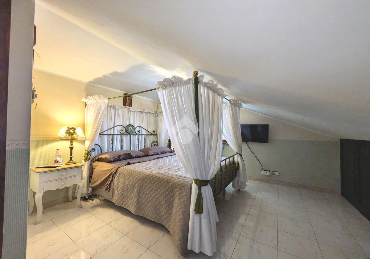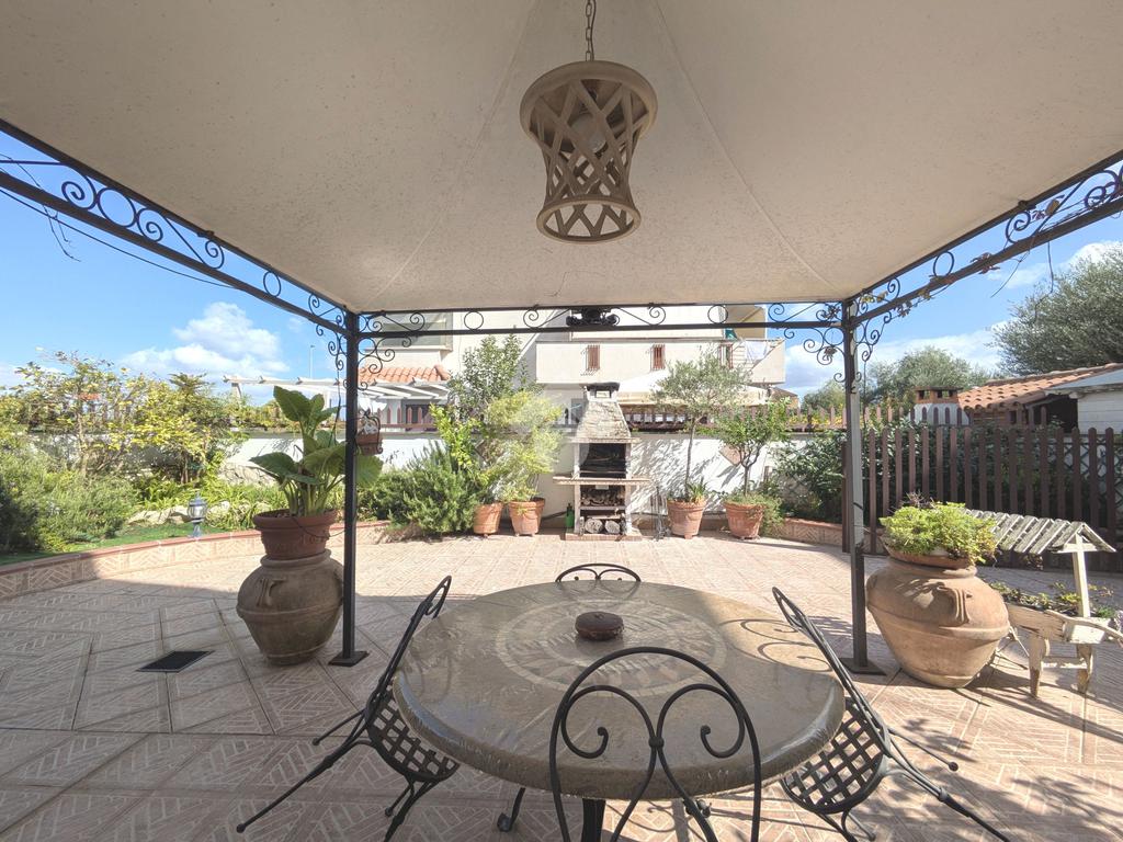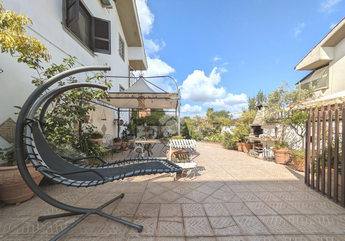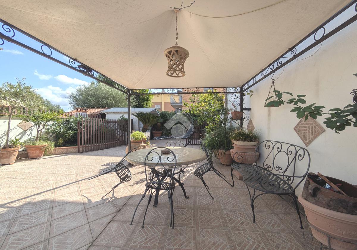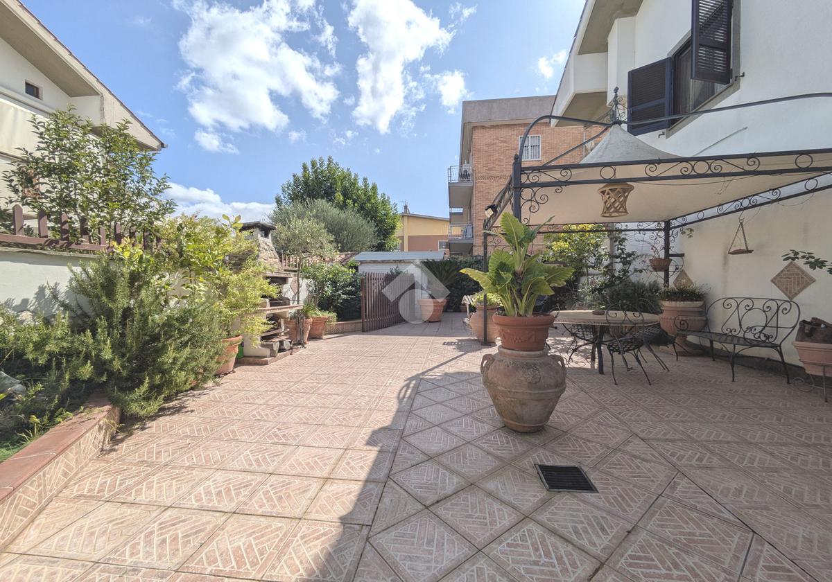 L'accesso alla proprietà avviene attraverso un parcheggio privato interno, comodo anche per due vetture grandi, da cui dopo aver parcheggiato possiamo entrare all'interno nel giardino. Il giardino che ci accoglie è principalmente mattonato ma con delle aiuole verdi molto curate. Questo spazio è la vera perla della casa, uno spazio all'aperto dove trascorrere le belle giornate in compagnia degli amici e della famiglia, tra barbecue e tavolate. Per le giornate più fredde è stato creato un portico a vetri dove intrattenersi con un salottino di rappresentanza o eventualmente dove creare uno studio. E per gli amanti del bricolage è presente una casetta in legno dove poter riporre tutti gli attrezzi o dare libero sfogo alla creatività. Attraverso una scala in marmo saliamo al piano primo. Ad accoglierci è un salone molto luminoso grazie alla doppia esposizione. Il parquet, caldo ed elegante, fa da cornice a questo ambiente curato in ogni minimo dettaglio. Grazie alle due porte finestre, possiamo uscire sul terrazzo, perimetrale ed abitabile, dove poter mangiare all'aperto nella bella stagione. La cucina è un ambiente separato dove poter mangiare anche in 6 persone, arredato da una bellissima cucina in muratura dallo stile rustico, correlata di camino. La zona notte, che si trova al piano superiore dell'immobile, comprende una camera da letto con letto a baldacchino ed una cameretta. I due piani sono separati da una porta al fine di permettere il risparmio energetico e un miglior riscaldamento/raffrescamento dei singoli ambienti. I servizi, che si trovano sia al piano primo che al piano superiore, offrono praticità e comfort per la vita quotidiana e sono arredati di lavabi su misura: uno ha la vasca e l'altro ha la doccia. Il fabbricato di cui fa parte è stato costruito nel 1987, ma l'appartamento internamente è stato ristrutturato totalmente dall'attuale proprietario, che non ha risparmiato ne sulla qualità dei materiali ne sui dettagli. E' dotato di aria condizionata, persiane blindate, zanzariere, antifurto e tende da sole. La casa viene venduta con l'arredamento incluso di: cucina, bagni, armadi su misura, letto a baldacchino e casetta di legno in giardino.
