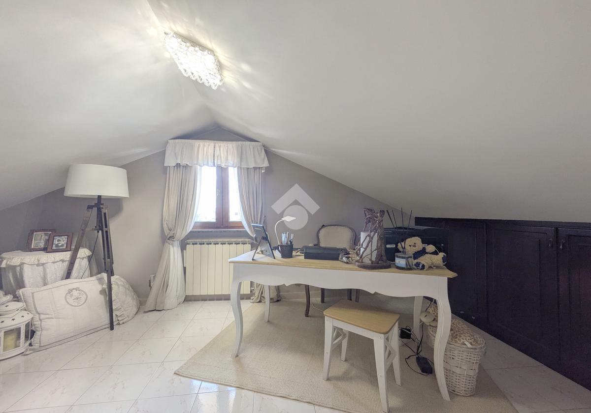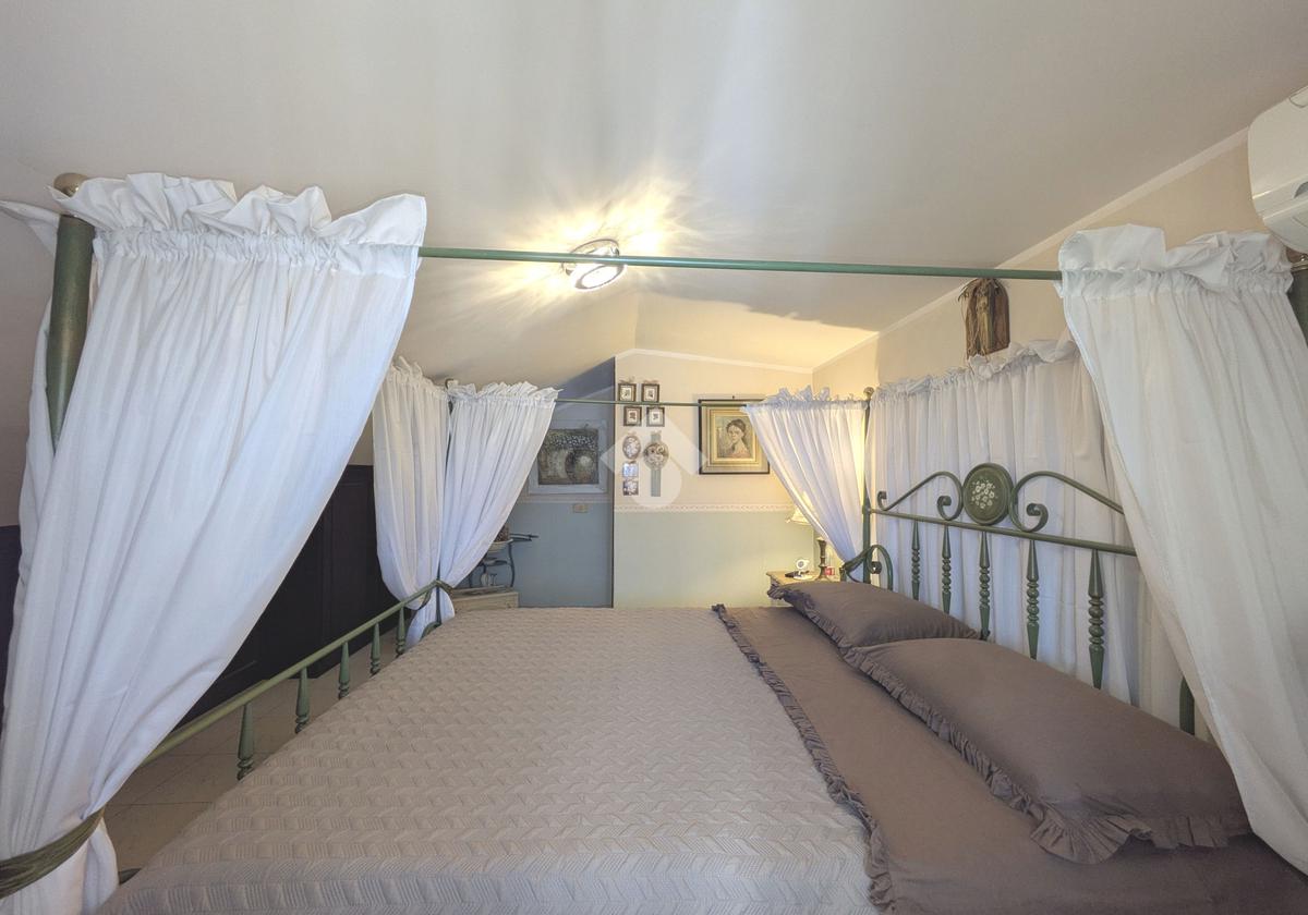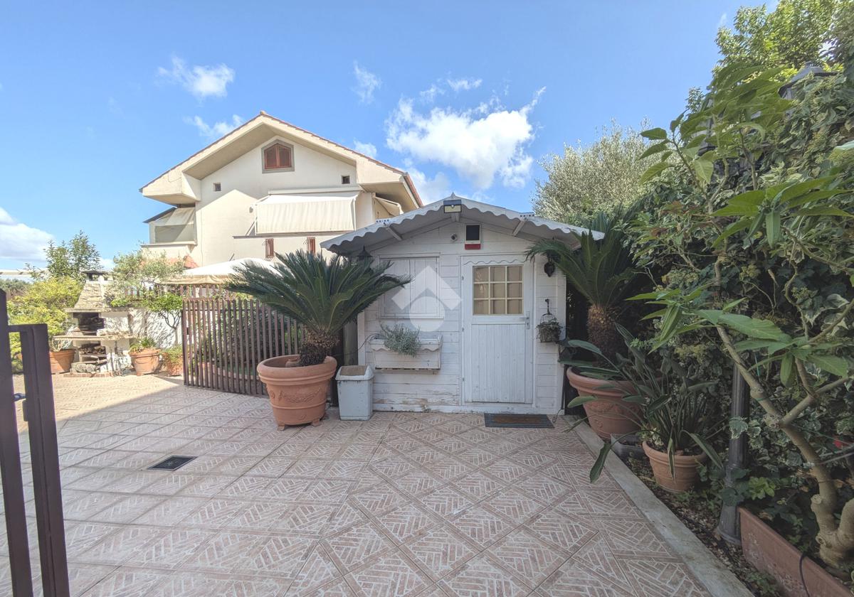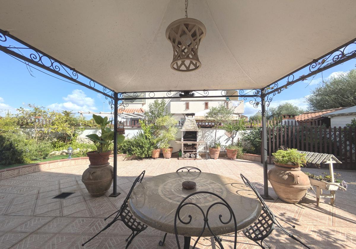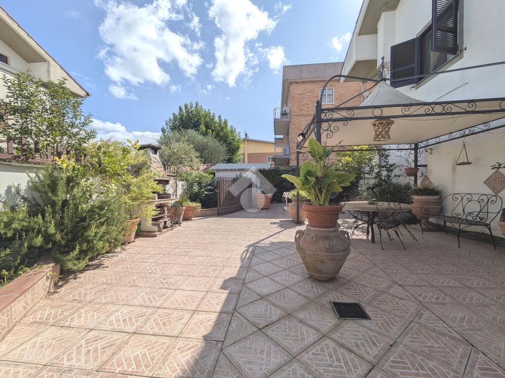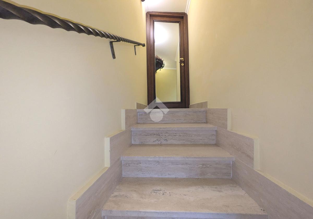 L'accesso alla proprietà avviene attraverso un parcheggio privato interno, comodo anche per due vetture grandi, da cui dopo aver parcheggiato possiamo entrare all'interno nel giardino. Il giardino che ci accoglie è principalmente mattonato ma con delle aiuole verdi molto curate. Questo spazio è la vera perla della casa, uno spazio all'aperto dove trascorrere le belle giornate in compagnia degli amici e della famiglia, tra barbecue e tavolate. Per le giornate più fredde è stato creato un portico a vetri dove intrattenersi con un salottino di rappresentanza o eventualmente dove creare uno studio. E per gli amanti del bricolage è presente una casetta in legno dove poter riporre tutti gli attrezzi o dare libero sfogo alla creatività. Attraverso una scala in marmo saliamo al piano primo. Ad accoglierci è un salone molto luminoso grazie alla doppia esposizione. Il parquet, caldo ed elegante, fa da cornice a questo ambiente curato in ogni minimo dettaglio. Grazie alle due porte finestre, possiamo uscire sul terrazzo, perimetrale ed abitabile, dove poter mangiare all'aperto nella bella stagione. La cucina è un ambiente separato dove poter mangiare anche in 6 persone, arredato da una bellissima cucina in muratura dallo stile rustico, correlata di camino. La zona notte, che si trova al piano superiore dell'immobile, comprende una camera da letto con letto a baldacchino ed una cameretta. I due piani sono separati da una porta al fine di permettere il risparmio energetico e un miglior riscaldamento/raffrescamento dei singoli ambienti. I servizi, che si trovano sia al piano primo che al piano superiore, offrono praticità e comfort per la vita quotidiana e sono arredati di lavabi su misura: uno ha la vasca e l'altro ha la doccia. Il fabbricato di cui fa parte è stato costruito nel 1987, ma l'appartamento internamente è stato ristrutturato totalmente dall'attuale proprietario, che non ha risparmiato ne sulla qualità dei materiali ne sui dettagli. E' dotato di aria condizionata, persiane blindate, zanzariere, antifurto e tende da sole. La casa viene venduta con l'arredamento incluso di: cucina, bagni, armadi su misura, letto a baldacchino e casetta di legno in giardino.