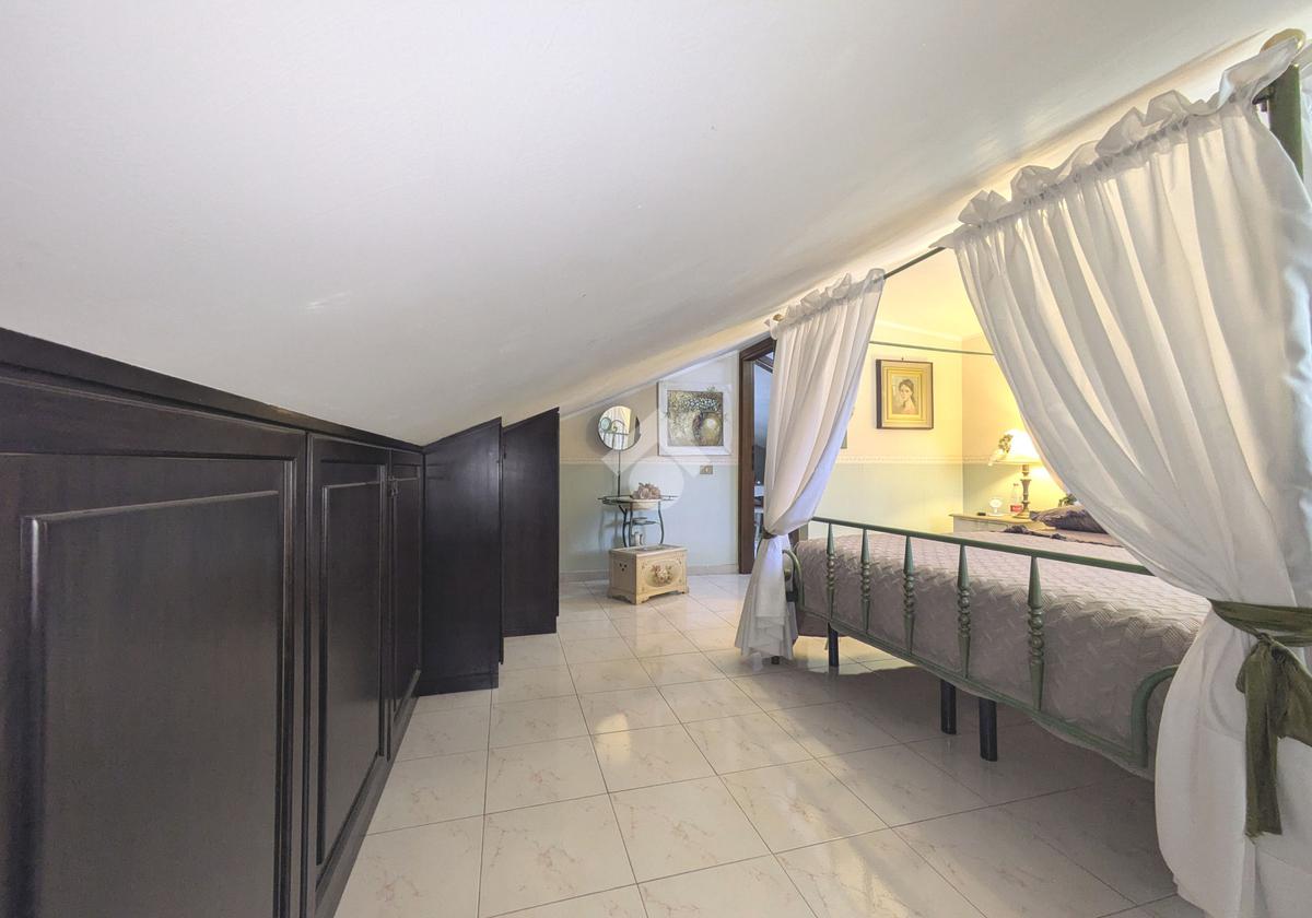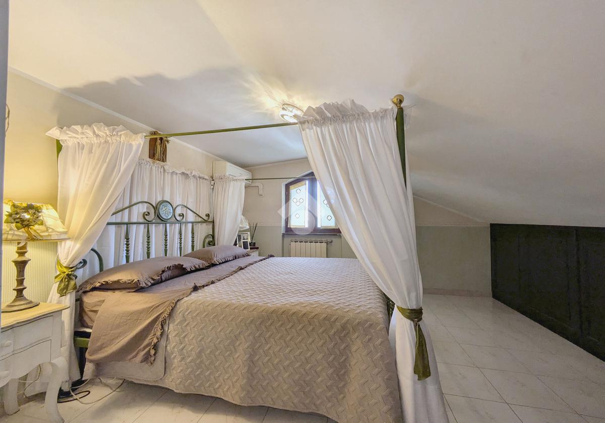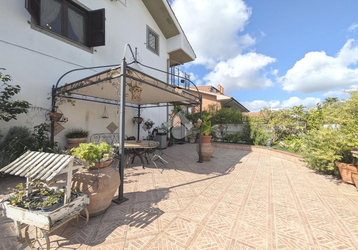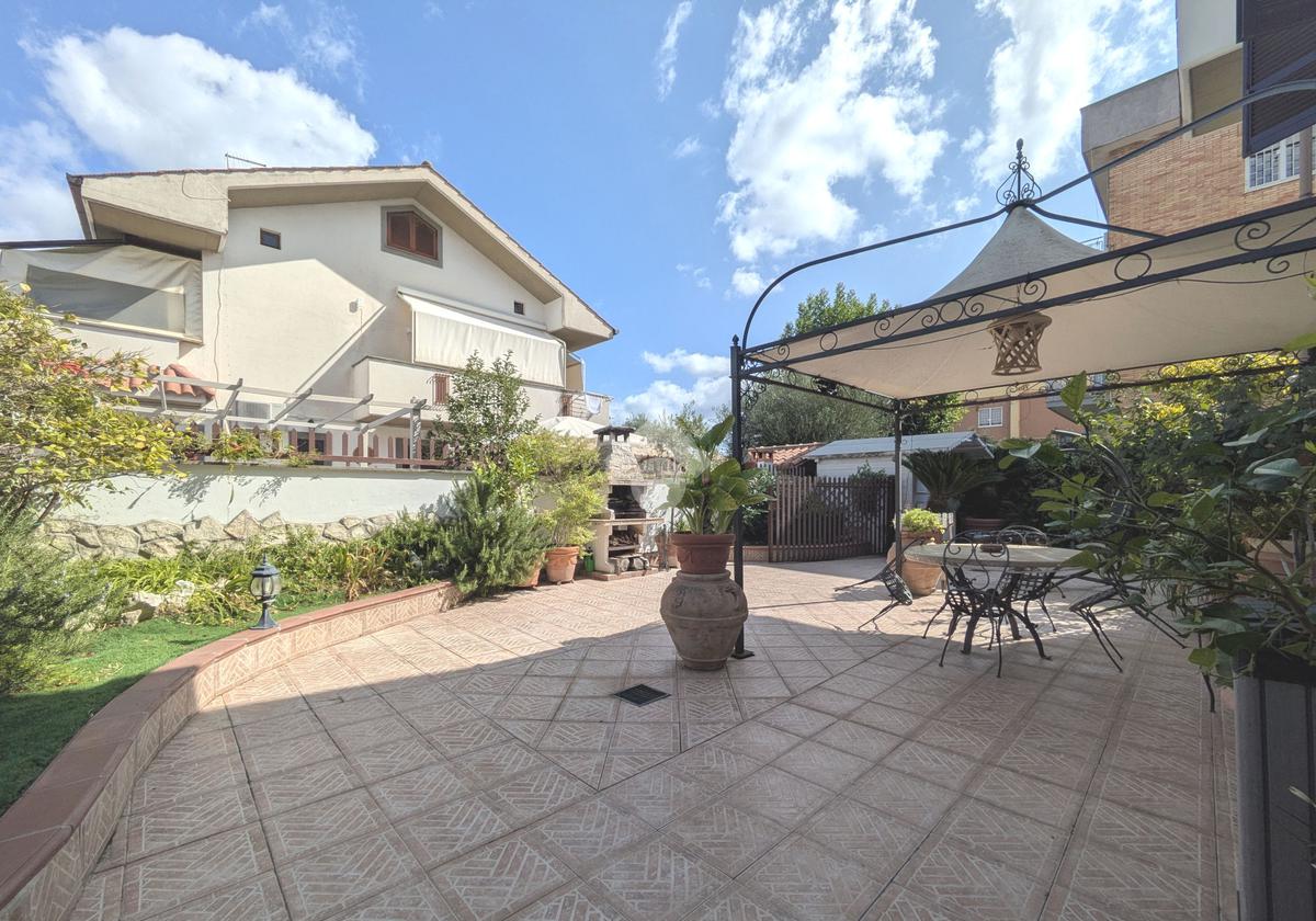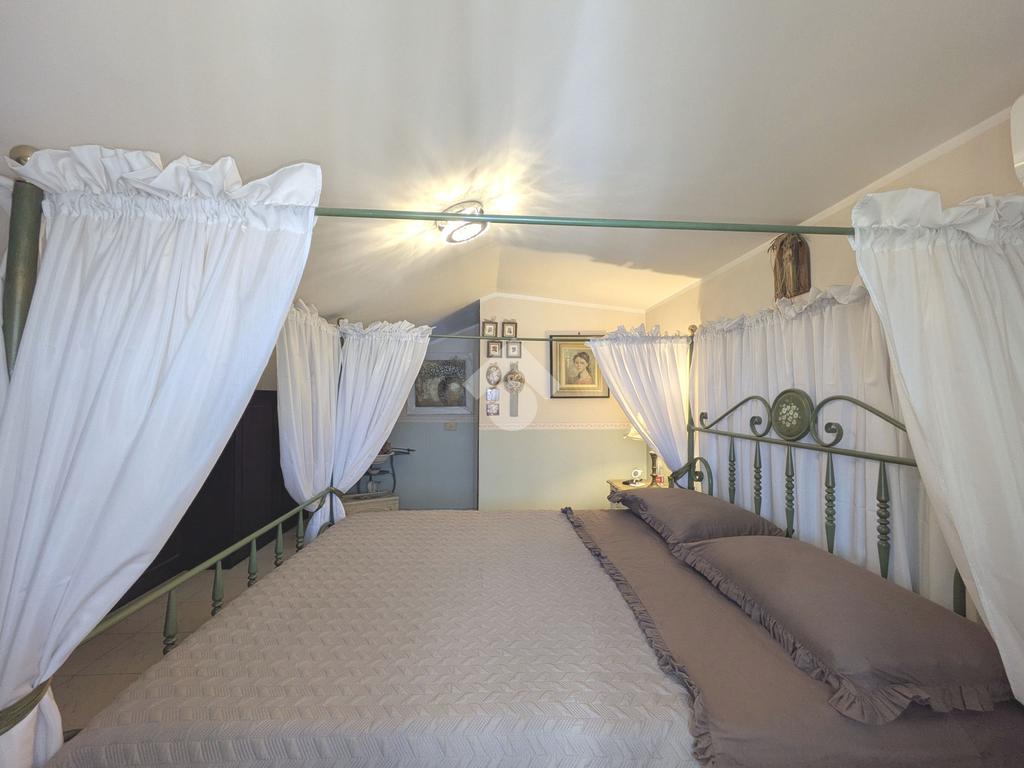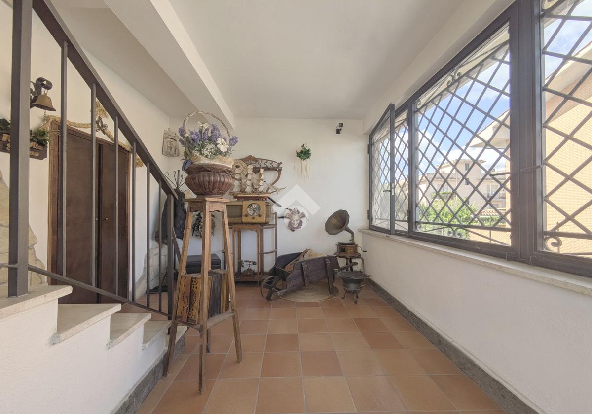 L'accesso alla proprietà avviene attraverso un parcheggio privato interno, comodo anche per due vetture grandi, da cui dopo aver parcheggiato possiamo entrare all'interno nel giardino. Il giardino che ci accoglie è principalmente mattonato ma con delle aiuole verdi molto curate. Questo spazio è la vera perla della casa, uno spazio all'aperto dove trascorrere le belle giornate in compagnia degli amici e della famiglia, tra barbecue e tavolate. Per le giornate più fredde è stato creato un portico a vetri dove intrattenersi con un salottino di rappresentanza o eventualmente dove creare uno studio. E per gli amanti del bricolage è presente una casetta in legno dove poter riporre tutti gli attrezzi o dare libero sfogo alla creatività. Attraverso una scala in marmo saliamo al piano primo. Ad accoglierci è un salone molto luminoso grazie alla doppia esposizione. Il parquet, caldo ed elegante, fa da cornice a questo ambiente curato in ogni minimo dettaglio. Grazie alle due porte finestre, possiamo uscire sul terrazzo, perimetrale ed abitabile, dove poter mangiare all'aperto nella bella stagione. La cucina è un ambiente separato dove poter mangiare anche in 6 persone, arredato da una bellissima cucina in muratura dallo stile rustico, correlata di camino. La zona notte, che si trova al piano superiore dell'immobile, comprende una camera da letto con letto a baldacchino ed una cameretta. I due piani sono separati da una porta al fine di permettere il risparmio energetico e un miglior riscaldamento/raffrescamento dei singoli ambienti. I servizi, che si trovano sia al piano primo che al piano superiore, offrono praticità e comfort per la vita quotidiana e sono arredati di lavabi su misura: uno ha la vasca e l'altro ha la doccia. Il fabbricato di cui fa parte è stato costruito nel 1987, ma l'appartamento internamente è stato ristrutturato totalmente dall'attuale proprietario, che non ha risparmiato ne sulla qualità dei materiali ne sui dettagli. E' dotato di aria condizionata, persiane blindate, zanzariere, antifurto e tende da sole. La casa viene venduta con l'arredamento incluso di: cucina, bagni, armadi su misura, letto a baldacchino e casetta di legno in giardino.