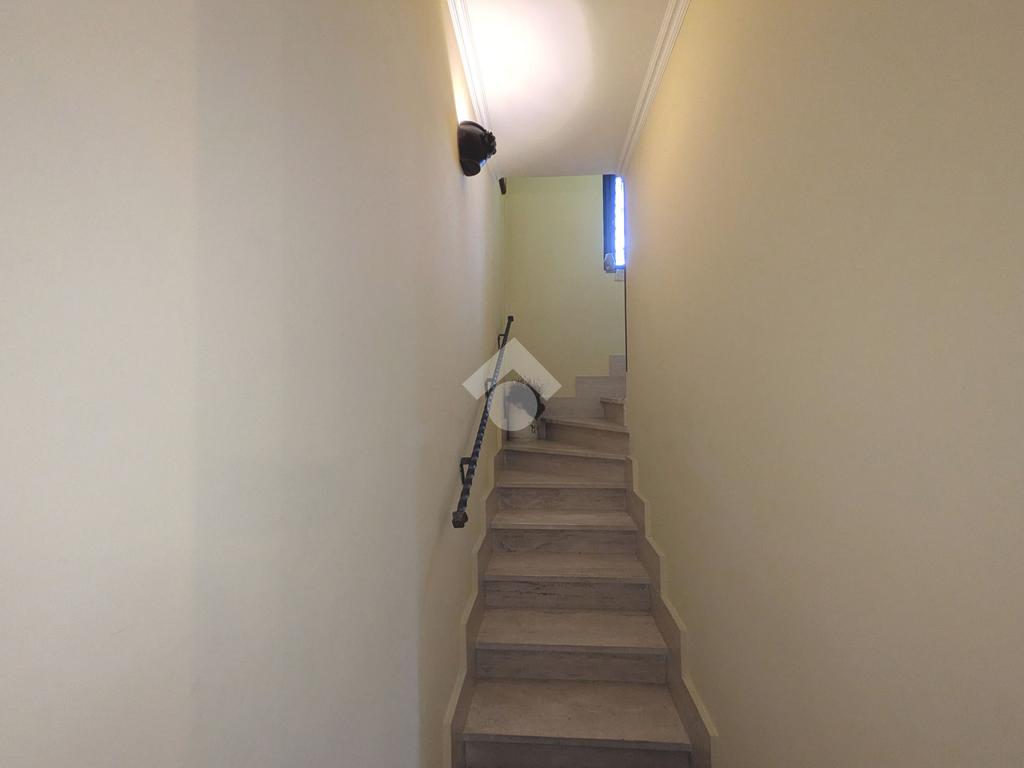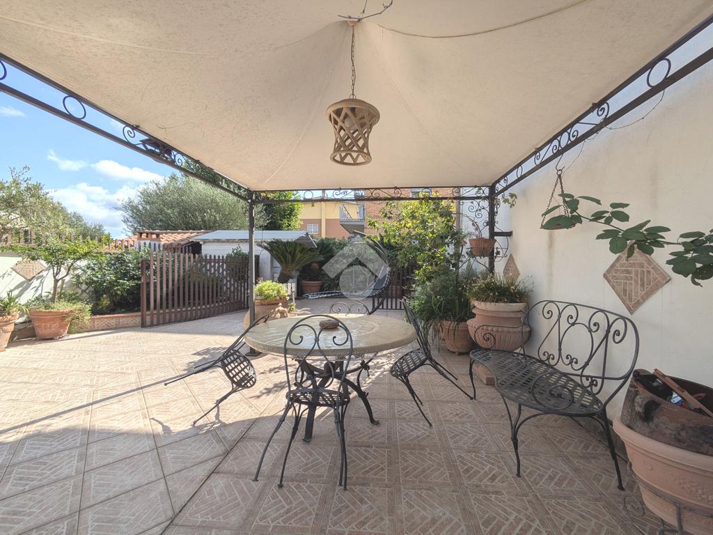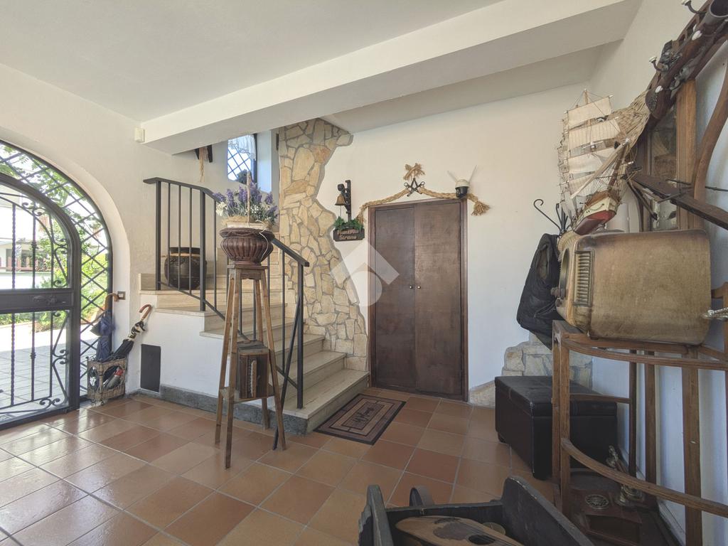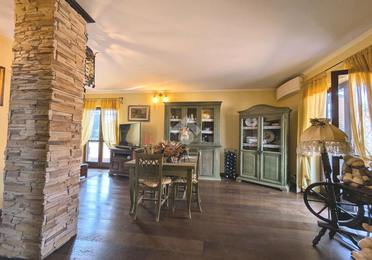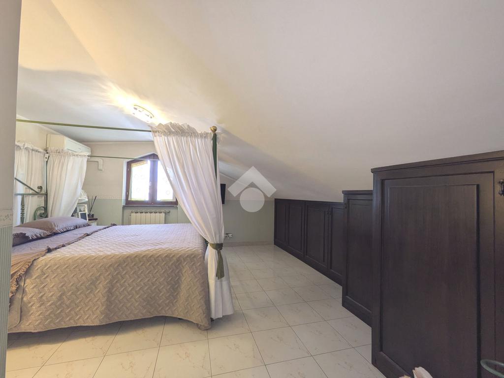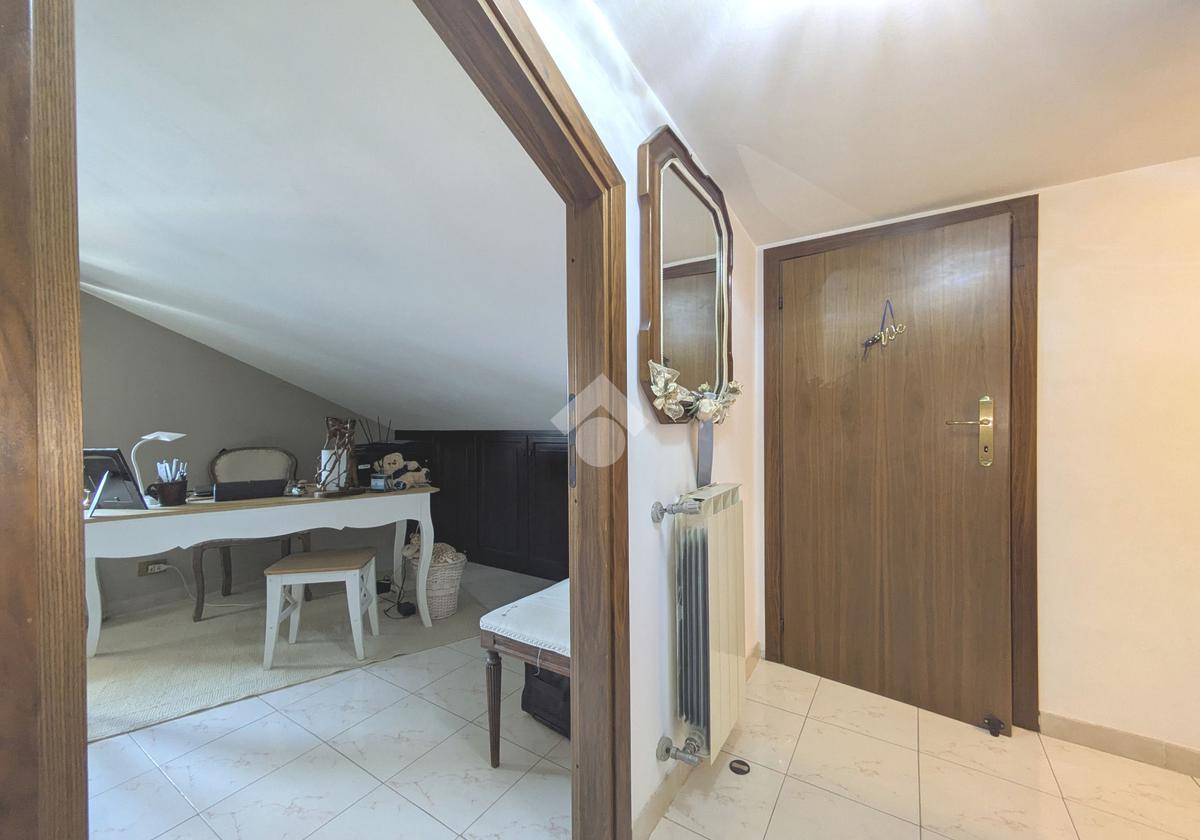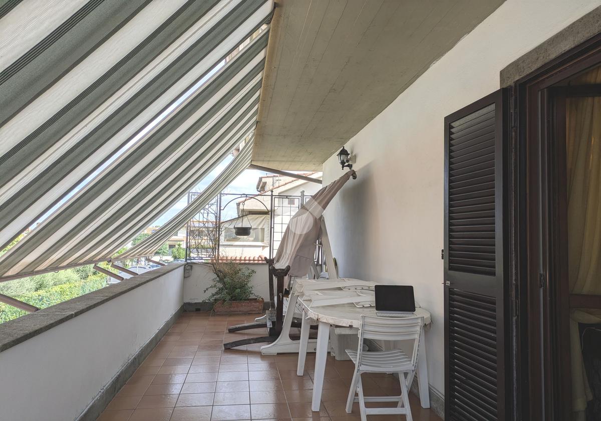 L'accesso alla proprietà avviene attraverso un parcheggio privato interno, comodo anche per due vetture grandi, da cui dopo aver parcheggiato possiamo entrare all'interno nel giardino. Il giardino che ci accoglie è principalmente mattonato ma con delle aiuole verdi molto curate. Questo spazio è la vera perla della casa, uno spazio all'aperto dove trascorrere le belle giornate in compagnia degli amici e della famiglia, tra barbecue e tavolate. Per le giornate più fredde è stato creato un portico a vetri dove intrattenersi con un salottino di rappresentanza o eventualmente dove creare uno studio. E per gli amanti del bricolage è presente una casetta in legno dove poter riporre tutti gli attrezzi o dare libero sfogo alla creatività. Attraverso una scala in marmo saliamo al piano primo. Ad accoglierci è un salone molto luminoso grazie alla doppia esposizione. Il parquet, caldo ed elegante, fa da cornice a questo ambiente curato in ogni minimo dettaglio. Grazie alle due porte finestre, possiamo uscire sul terrazzo, perimetrale ed abitabile, dove poter mangiare all'aperto nella bella stagione. La cucina è un ambiente separato dove poter mangiare anche in 6 persone, arredato da una bellissima cucina in muratura dallo stile rustico, correlata di camino. La zona notte, che si trova al piano superiore dell'immobile, comprende una camera da letto con letto a baldacchino ed una cameretta. I due piani sono separati da una porta al fine di permettere il risparmio energetico e un miglior riscaldamento/raffrescamento dei singoli ambienti. I servizi, che si trovano sia al piano primo che al piano superiore, offrono praticità e comfort per la vita quotidiana e sono arredati di lavabi su misura: uno ha la vasca e l'altro ha la doccia. Il fabbricato di cui fa parte è stato costruito nel 1987, ma l'appartamento internamente è stato ristrutturato totalmente dall'attuale proprietario, che non ha risparmiato ne sulla qualità dei materiali ne sui dettagli. E' dotato di aria condizionata, persiane blindate, zanzariere, antifurto e tende da sole. La casa viene venduta con l'arredamento incluso di: cucina, bagni, armadi su misura, letto a baldacchino e casetta di legno in giardino.