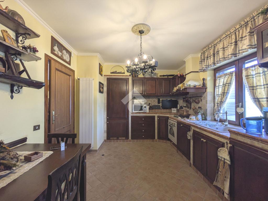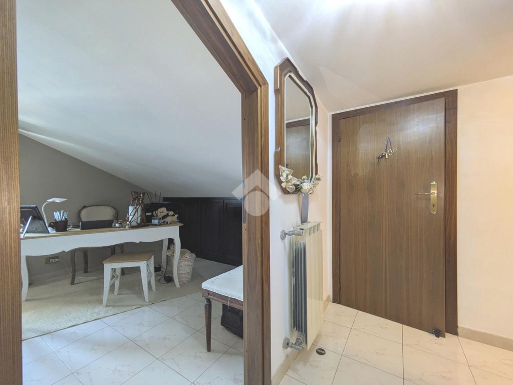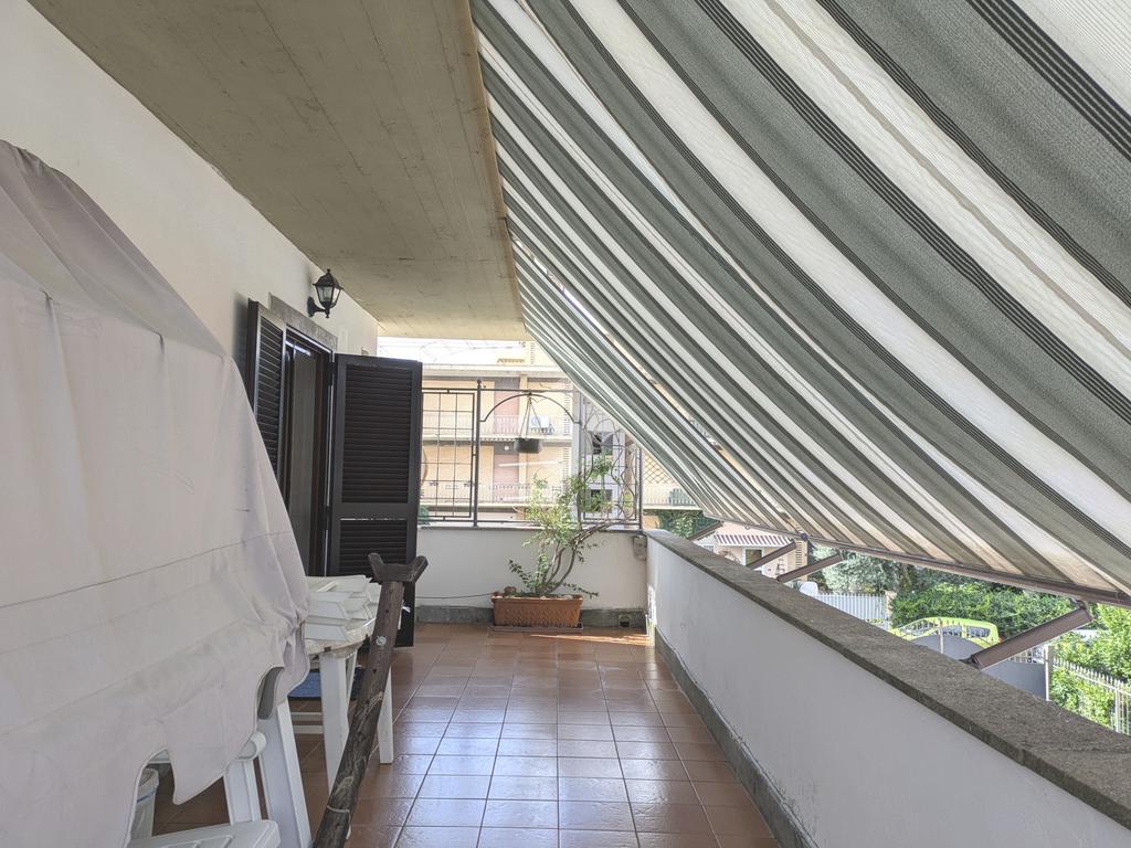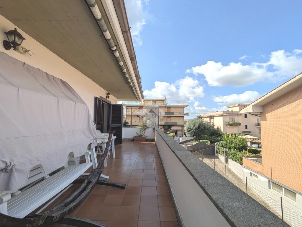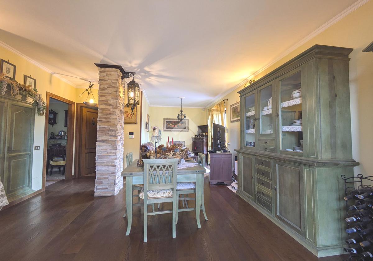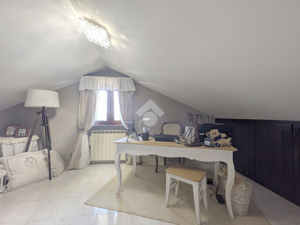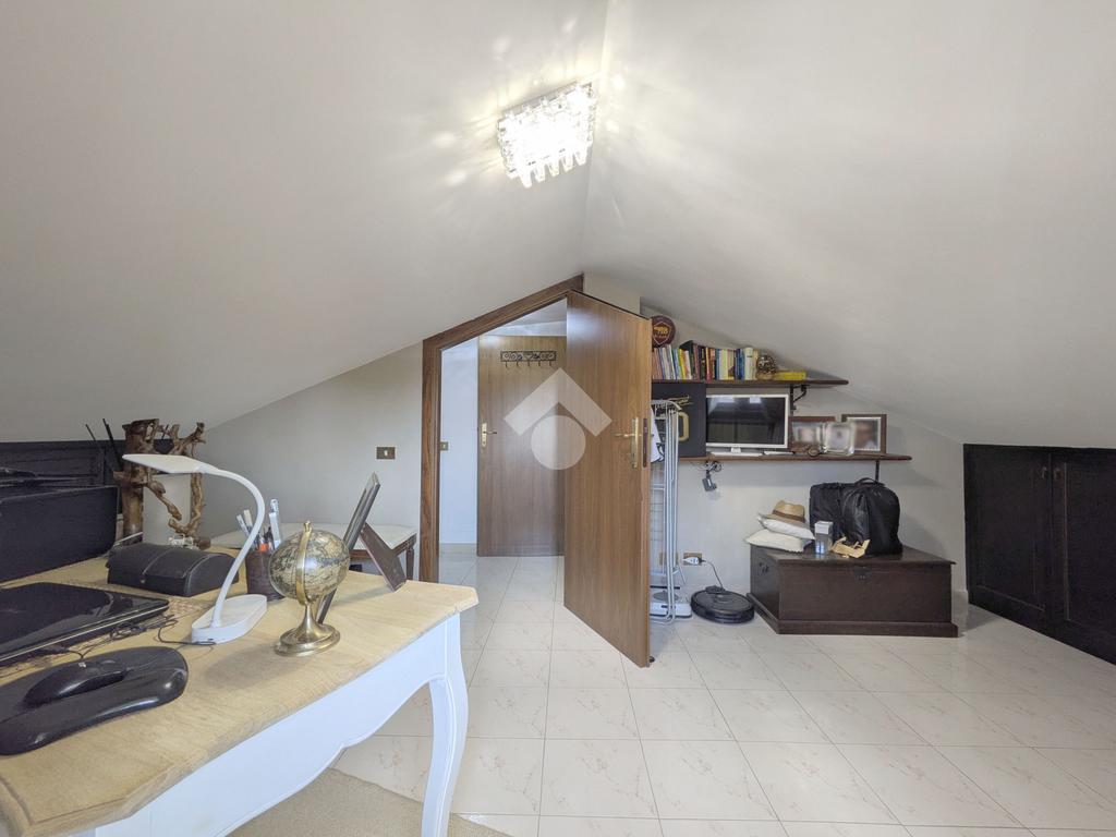 L'accesso alla proprietà avviene attraverso un parcheggio privato interno, comodo anche per due vetture grandi, da cui dopo aver parcheggiato possiamo entrare all'interno nel giardino. Il giardino che ci accoglie è principalmente mattonato ma con delle aiuole verdi molto curate. Questo spazio è la vera perla della casa, uno spazio all'aperto dove trascorrere le belle giornate in compagnia degli amici e della famiglia, tra barbecue e tavolate. Per le giornate più fredde è stato creato un portico a vetri dove intrattenersi con un salottino di rappresentanza o eventualmente dove creare uno studio. E per gli amanti del bricolage è presente una casetta in legno dove poter riporre tutti gli attrezzi o dare libero sfogo alla creatività. Attraverso una scala in marmo saliamo al piano primo. Ad accoglierci è un salone molto luminoso grazie alla doppia esposizione. Il parquet, caldo ed elegante, fa da cornice a questo ambiente curato in ogni minimo dettaglio. Grazie alle due porte finestre, possiamo uscire sul terrazzo, perimetrale ed abitabile, dove poter mangiare all'aperto nella bella stagione. La cucina è un ambiente separato dove poter mangiare anche in 6 persone, arredato da una bellissima cucina in muratura dallo stile rustico, correlata di camino. La zona notte, che si trova al piano superiore dell'immobile, comprende una camera da letto con letto a baldacchino ed una cameretta. I due piani sono separati da una porta al fine di permettere il risparmio energetico e un miglior riscaldamento/raffrescamento dei singoli ambienti. I servizi, che si trovano sia al piano primo che al piano superiore, offrono praticità e comfort per la vita quotidiana e sono arredati di lavabi su misura: uno ha la vasca e l'altro ha la doccia. Il fabbricato di cui fa parte è stato costruito nel 1987, ma l'appartamento internamente è stato ristrutturato totalmente dall'attuale proprietario, che non ha risparmiato ne sulla qualità dei materiali ne sui dettagli. E' dotato di aria condizionata, persiane blindate, zanzariere, antifurto e tende da sole. La casa viene venduta con l'arredamento incluso di: cucina, bagni, armadi su misura, letto a baldacchino e casetta di legno in giardino.