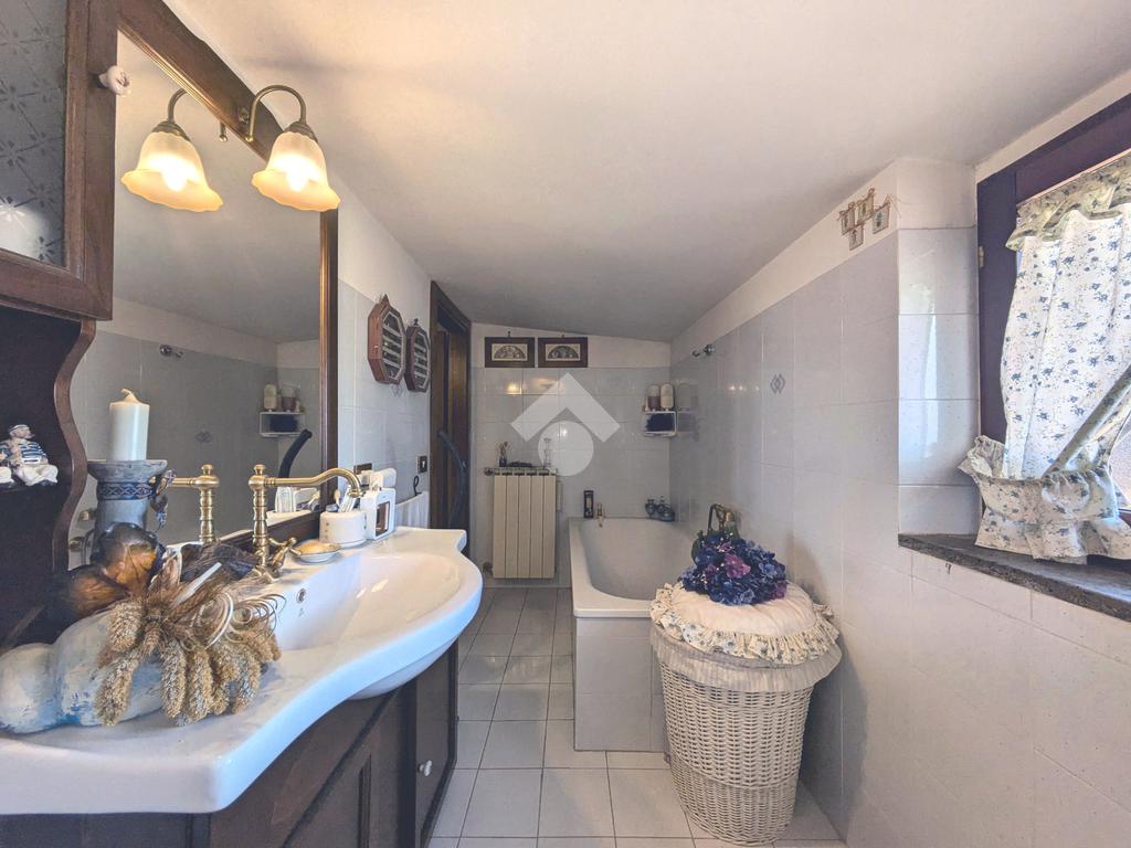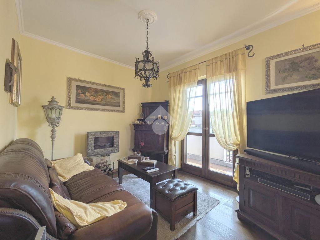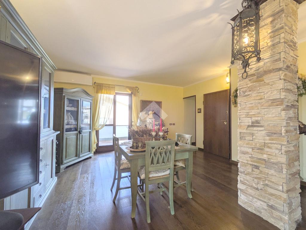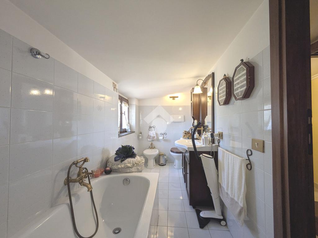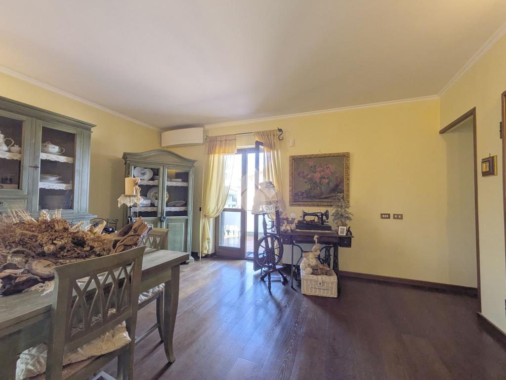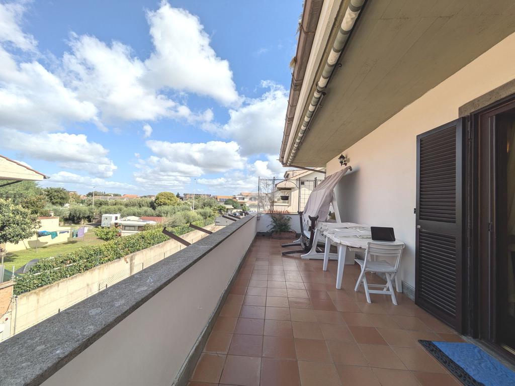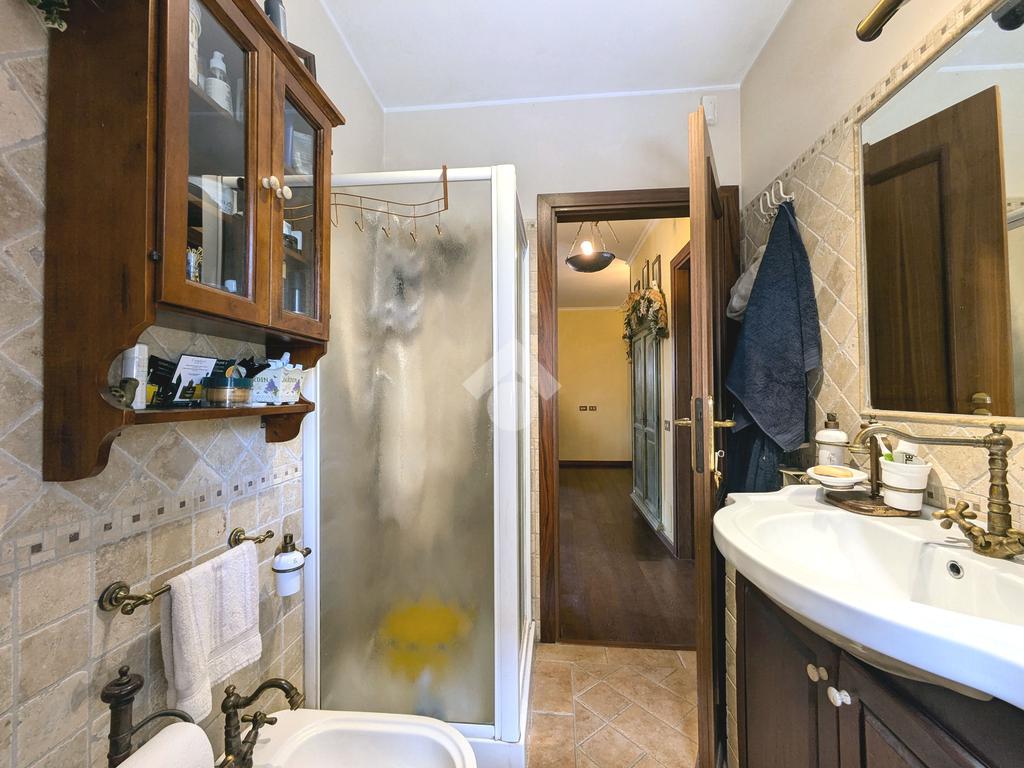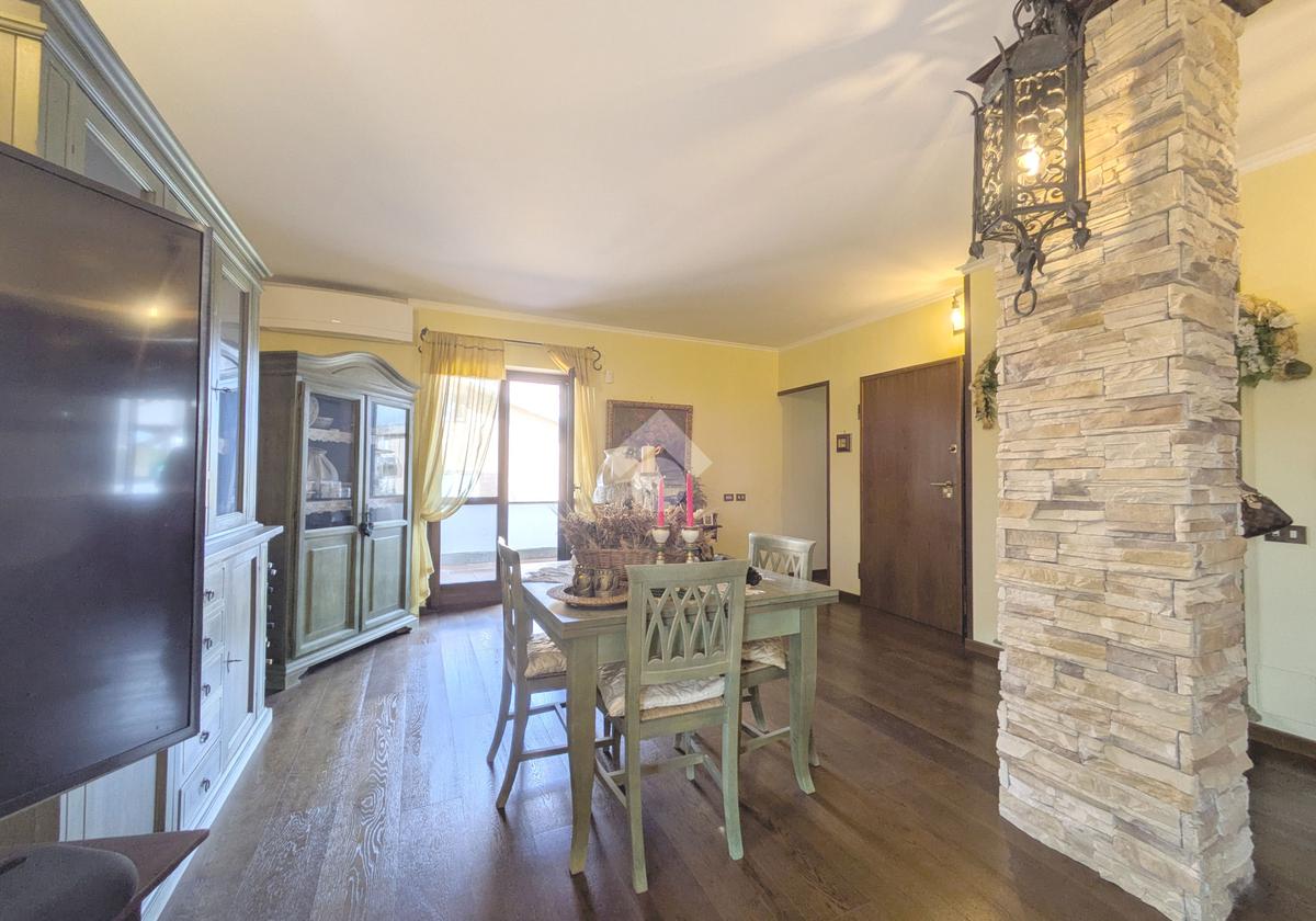 L'accesso alla proprietà avviene attraverso un parcheggio privato interno, comodo anche per due vetture grandi, da cui dopo aver parcheggiato possiamo entrare all'interno nel giardino. Il giardino che ci accoglie è principalmente mattonato ma con delle aiuole verdi molto curate. Questo spazio è la vera perla della casa, uno spazio all'aperto dove trascorrere le belle giornate in compagnia degli amici e della famiglia, tra barbecue e tavolate. Per le giornate più fredde è stato creato un portico a vetri dove intrattenersi con un salottino di rappresentanza o eventualmente dove creare uno studio. E per gli amanti del bricolage è presente una casetta in legno dove poter riporre tutti gli attrezzi o dare libero sfogo alla creatività. Attraverso una scala in marmo saliamo al piano primo. Ad accoglierci è un salone molto luminoso grazie alla doppia esposizione. Il parquet, caldo ed elegante, fa da cornice a questo ambiente curato in ogni minimo dettaglio. Grazie alle due porte finestre, possiamo uscire sul terrazzo, perimetrale ed abitabile, dove poter mangiare all'aperto nella bella stagione. La cucina è un ambiente separato dove poter mangiare anche in 6 persone, arredato da una bellissima cucina in muratura dallo stile rustico, correlata di camino. La zona notte, che si trova al piano superiore dell'immobile, comprende una camera da letto con letto a baldacchino ed una cameretta. I due piani sono separati da una porta al fine di permettere il risparmio energetico e un miglior riscaldamento/raffrescamento dei singoli ambienti. I servizi, che si trovano sia al piano primo che al piano superiore, offrono praticità e comfort per la vita quotidiana e sono arredati di lavabi su misura: uno ha la vasca e l'altro ha la doccia. Il fabbricato di cui fa parte è stato costruito nel 1987, ma l'appartamento internamente è stato ristrutturato totalmente dall'attuale proprietario, che non ha risparmiato ne sulla qualità dei materiali ne sui dettagli. E' dotato di aria condizionata, persiane blindate, zanzariere, antifurto e tende da sole. La casa viene venduta con l'arredamento incluso di: cucina, bagni, armadi su misura, letto a baldacchino e casetta di legno in giardino.