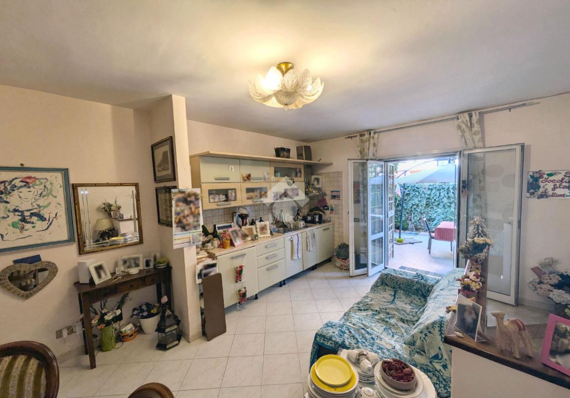 Entrando all'interno dell'immobile ci accoglie un soggiorno con angolo cottura, un disimpegno, 3 camere da letto ed 1 wc. Tutti gli ambienti su questo piano affacciano e/o hanno uscita sul giardino, angolare, in parte verde ed in parte mattonato, con un comodo gazebo nella parte antistante la cucina per poter mangiare all'aperto nei periodi estivi.
