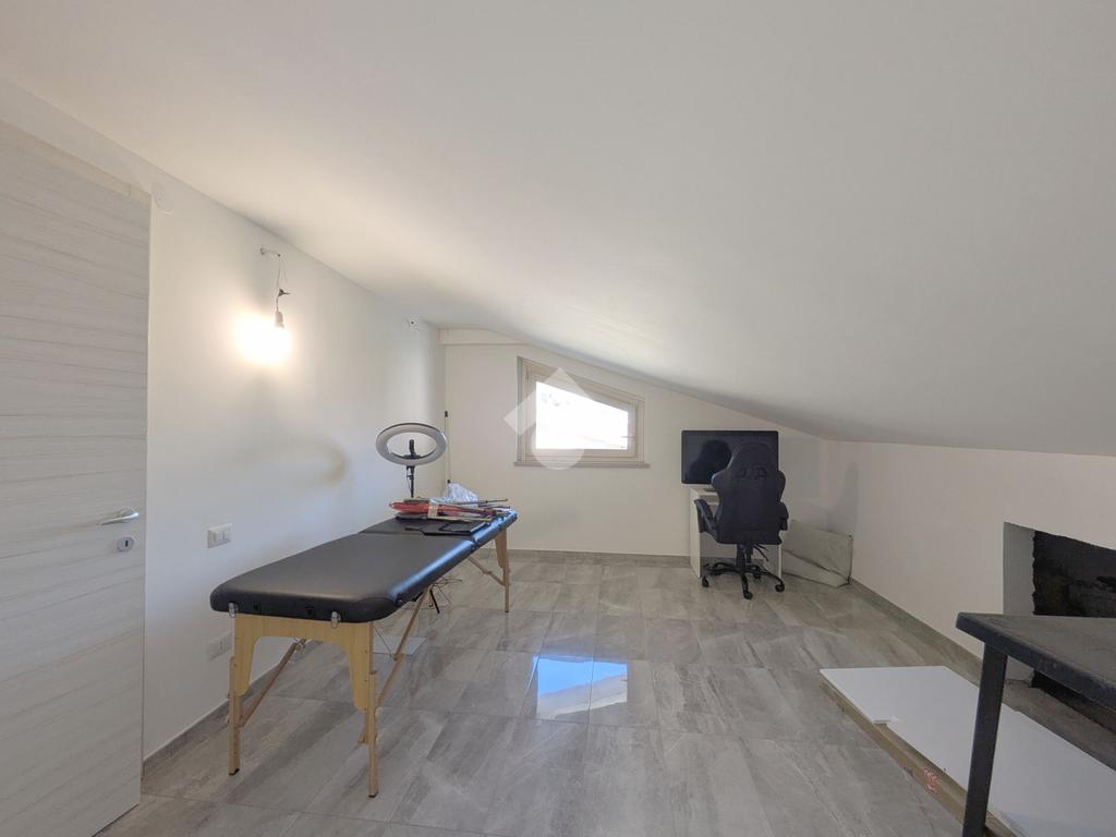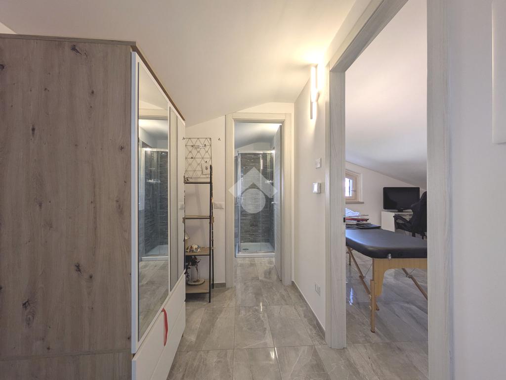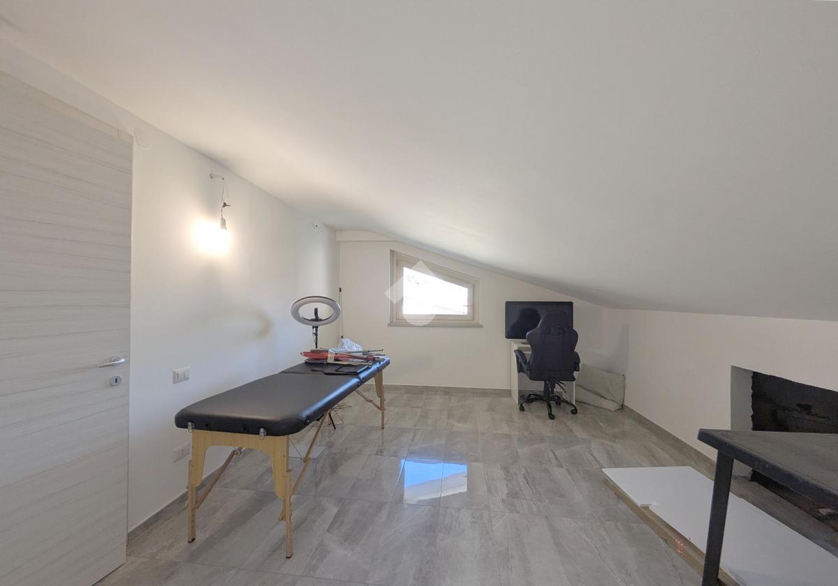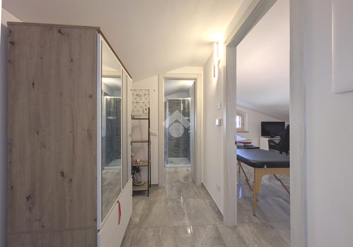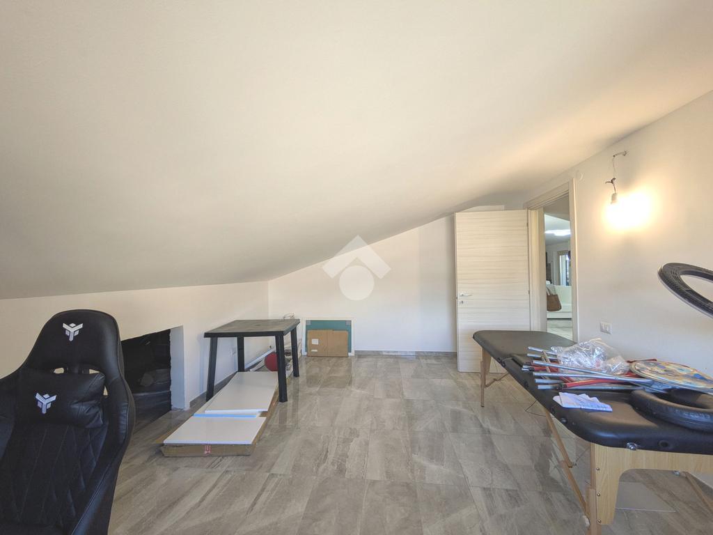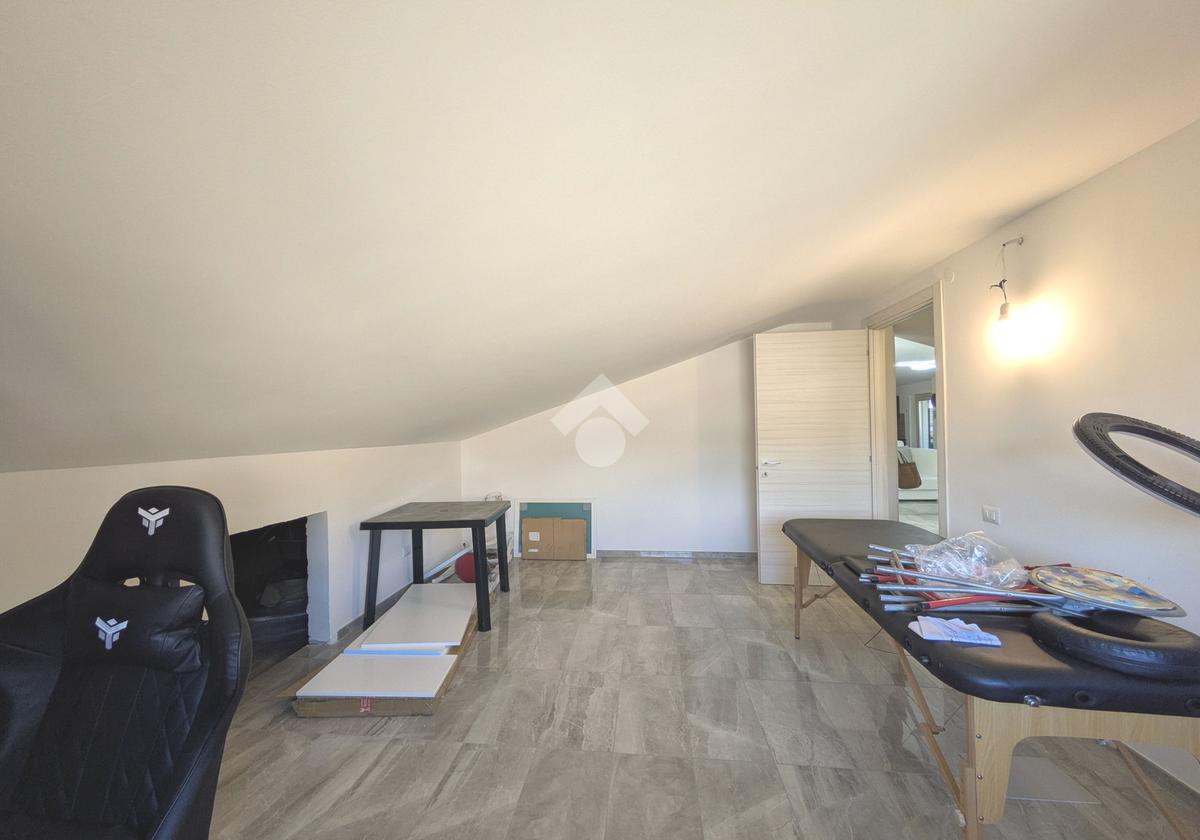 Situata al 1° piano, la mansarda si compone di un ampio salone con angolo cottura, due camere da letto ed il bagno finestrato. Un comodo ripostiglio completa gli interni, offrendo ulteriore spazio per l'organizzazione. Il terrazzo ci permette di godere di un ampio ambiente esterno. La proprietà include anche un posto auto di proprietà, un vantaggio significativo in una zona residenziale.