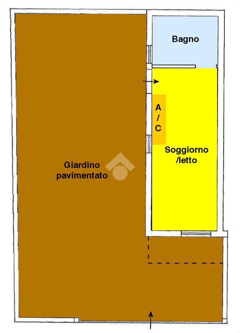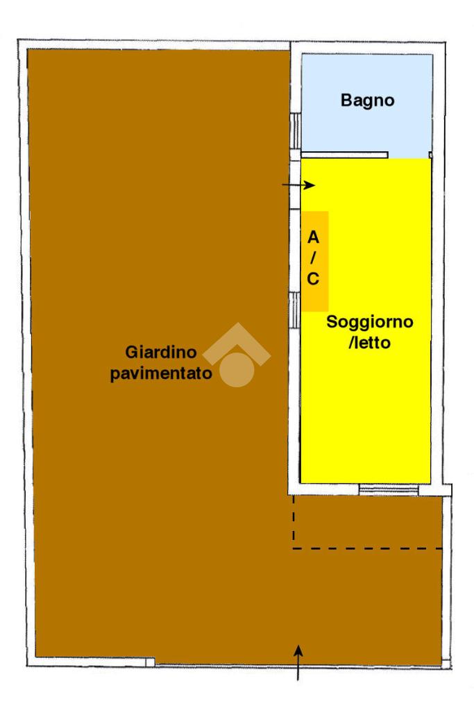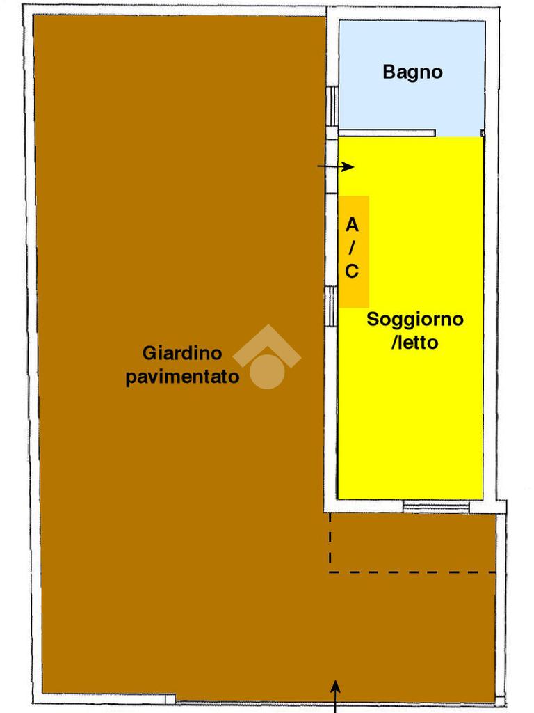Via R. Leoncavallo - In zona tranquilla e ben servita a pochi minuti a piedi dalla stazione centrale di Ciampino, proponiamo in vendita un monolocale al piano terra con accesso indipendente, composto da soggiorno/letto con angolo cottura, un bagno finestrato ed esternamente un giardino interamente pavimentato di circa 55mq. Ottime condizioni interne ed esterne, grate e zanzariere alle finestre, climatizzatore per raffrescamento e riscaldamento, tende da sole. Ottimo per uso investimento.