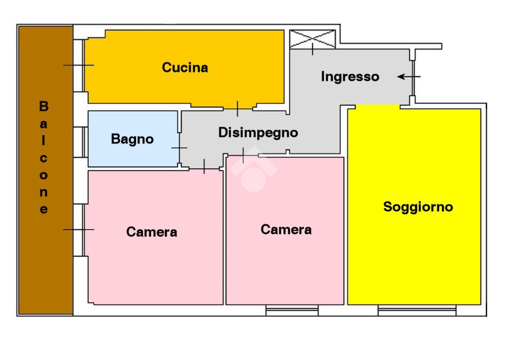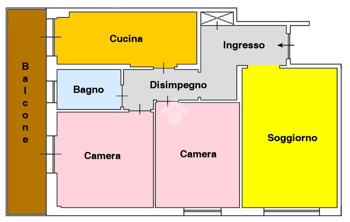 L’immobile al suo interno è così composto, appena entriamo ci accoglie un comodo disimpegno con armadio a muro, salone, cucina abitabile, due camere da letto, bagno e balcone.