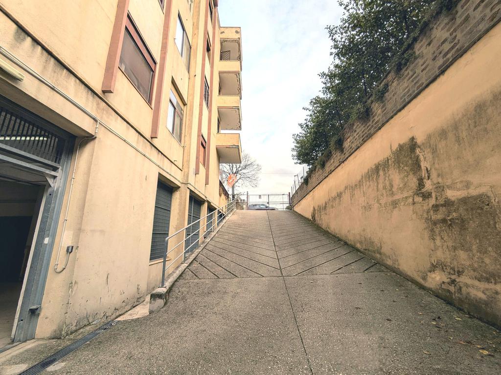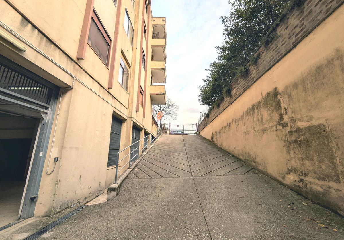 Completa la proprietà un box auto singolo, di circa 16 mq soppalcato, sito in Via Mura dei Francesi nelle vicinanze dell'appartamento. Inoltre il condominio è dotato di un'area comune di parcheggio riservata ai soli condomini.