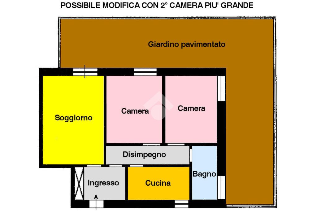 La soluzione, in parte da ristrutturare, con possibilità di modifiche, offre spazi interni ampi e ben distribuiti ed è composta da ingresso, soggiorno, cucina abitabile, camera matrimoniale, cameretta, bagno completamente ristrutturato, oltre a un pratico disimpegno; completa la proprietà una cantina.
