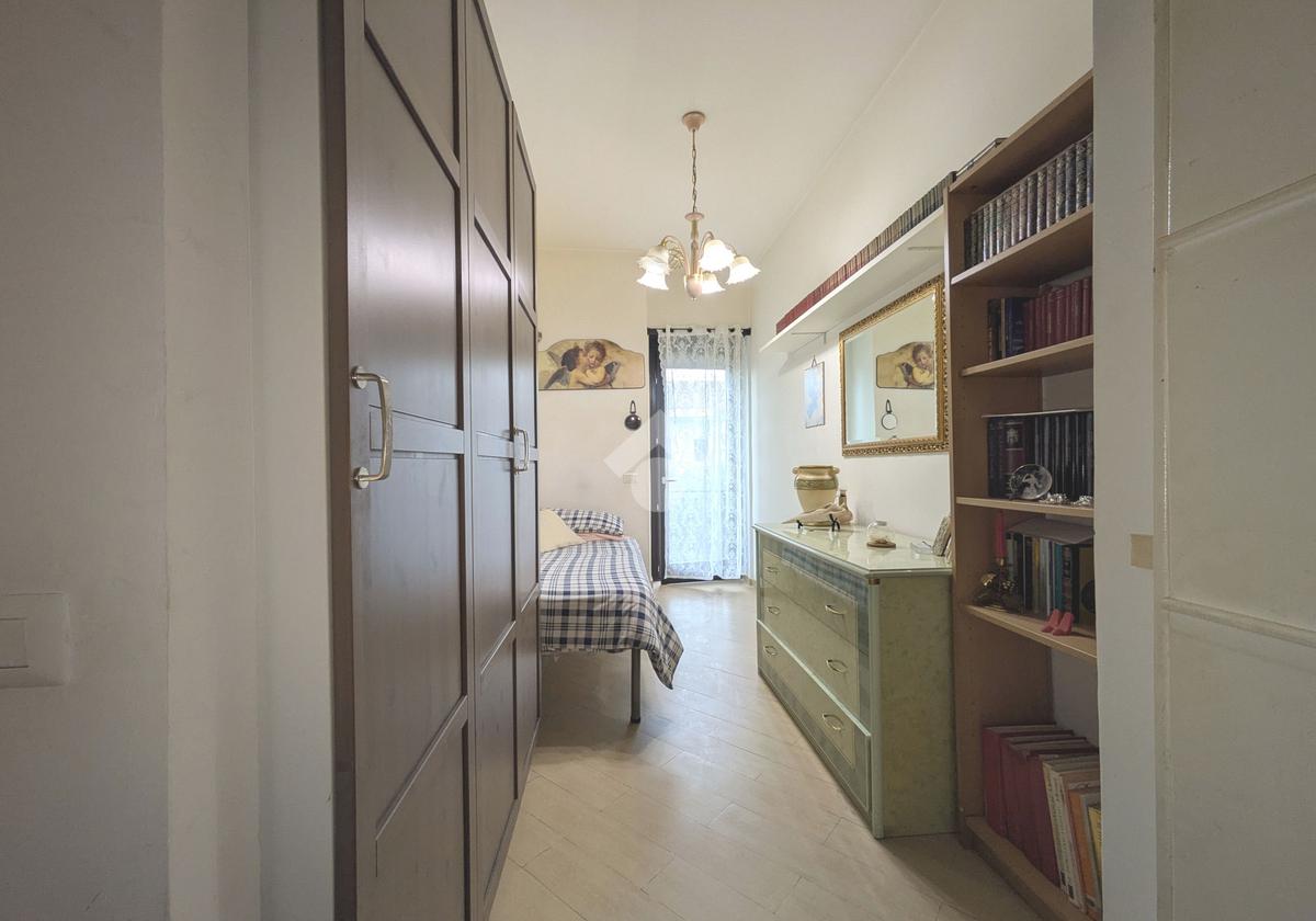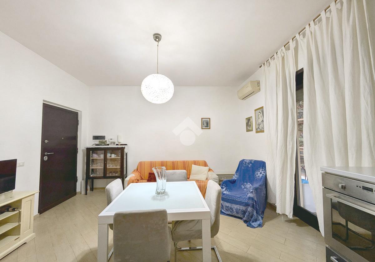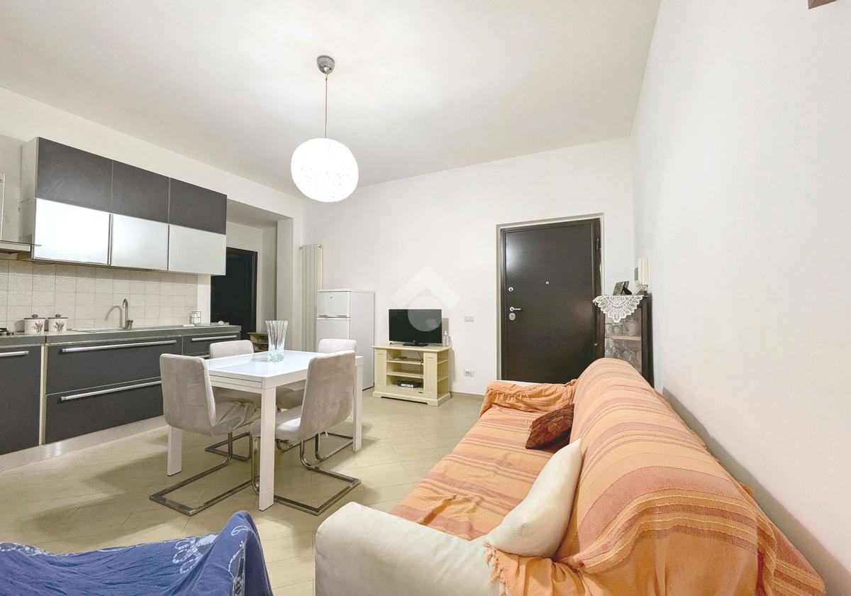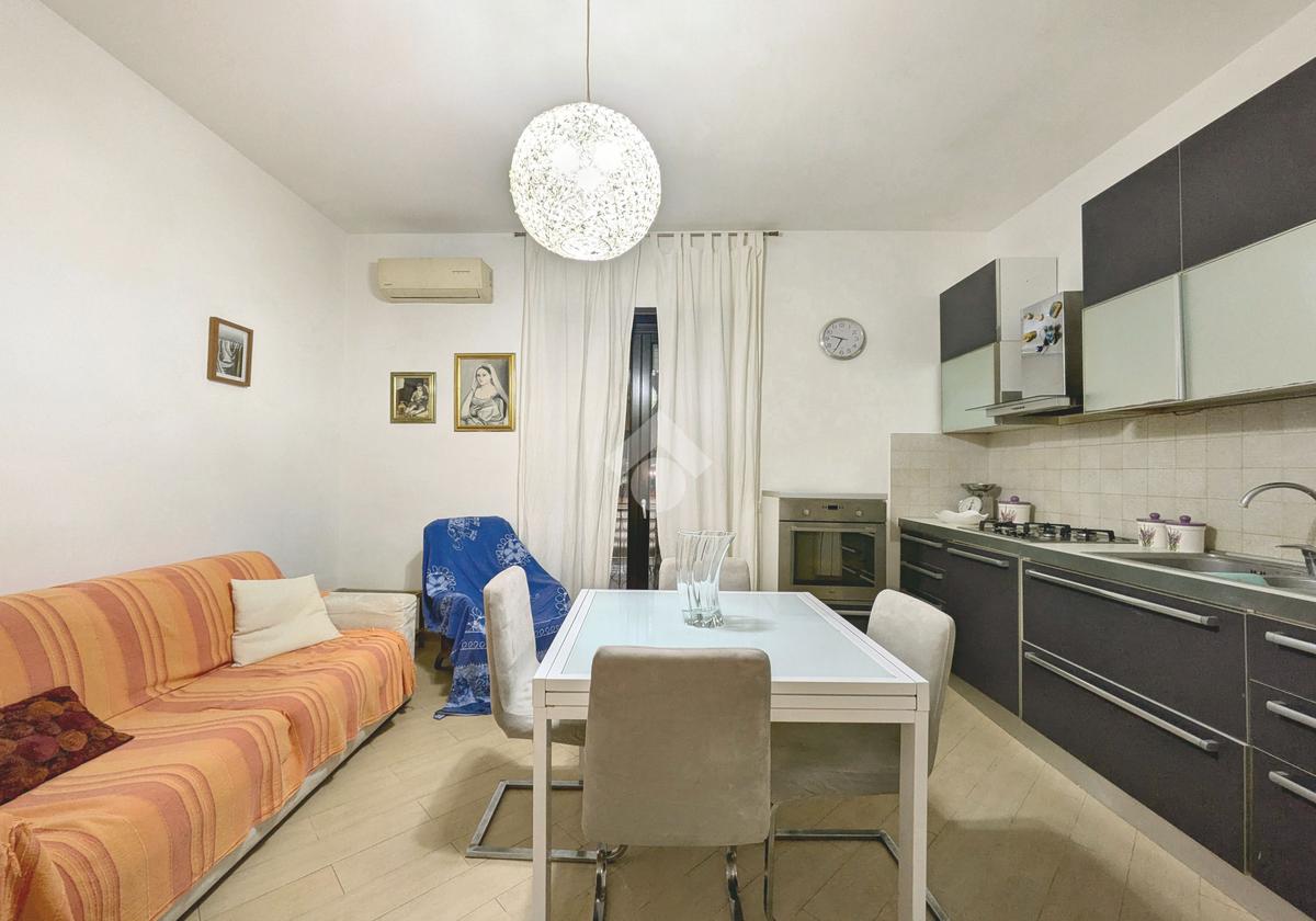 L'appartamento si compone di un luminoso soggiorno con angolo cottura con uscita su un balcone. La zona notte include una camera matrimoniale e una cameretta, quest'ultima dotata di un pratico balconcino. Il bagno è finestrato con box doccia.