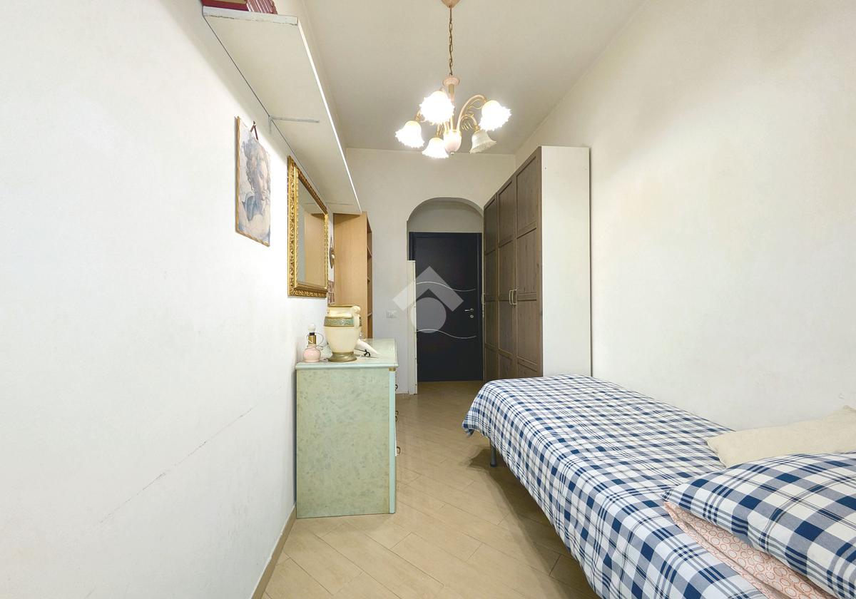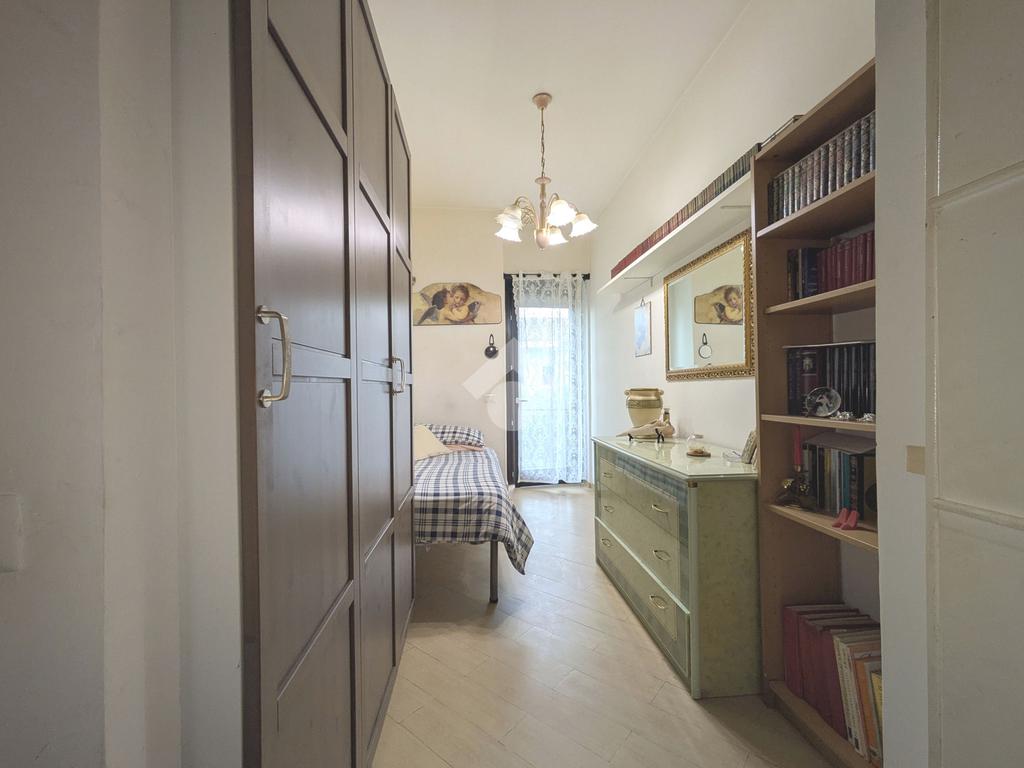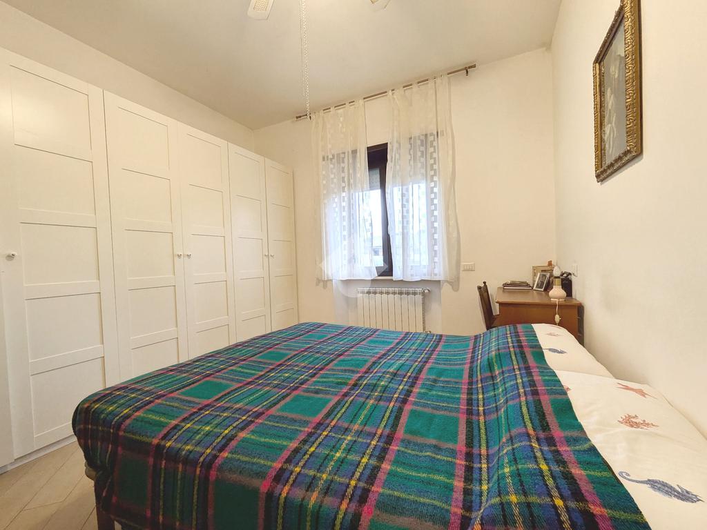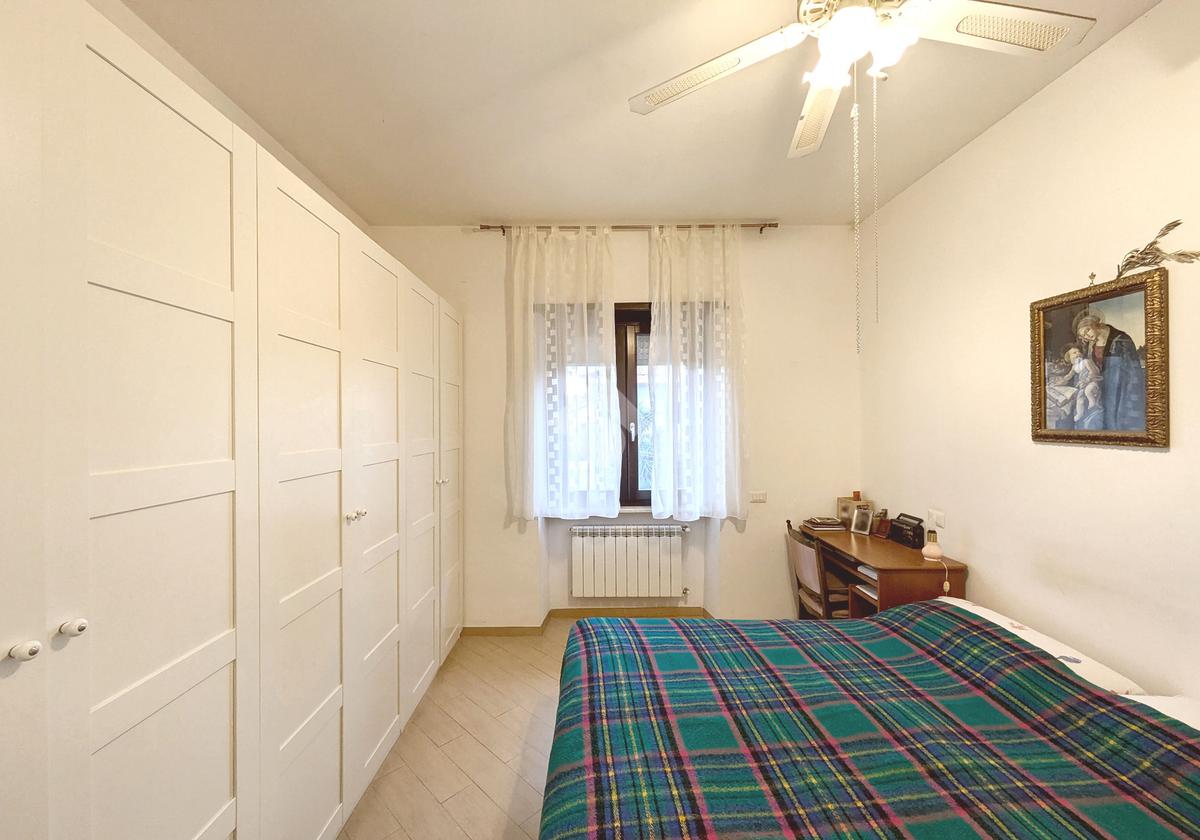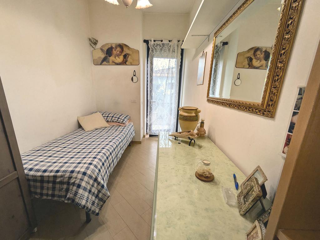 L'appartamento si compone di un luminoso soggiorno con angolo cottura con uscita su un balcone. La zona notte include una camera matrimoniale e una cameretta, quest'ultima dotata di un pratico balconcino. Il bagno è finestrato con box doccia.