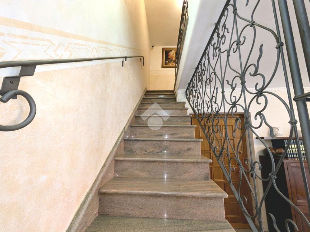 L’appartamento al suo interno si compone al piano primo da un ampio ingresso, un salone doppio dove troviamo la zona tv ed in prossimità poi della cucina, la zona pranzo. La cucina divisa dal salone attraverso una porta, ha una forma quadrata e regolare e dotata di una comoda cucina angolare. Sempre su questo piano troviamo anche un bagno di rappresentanza. Dal salone è possibile accedere a un comodo terrazzino.