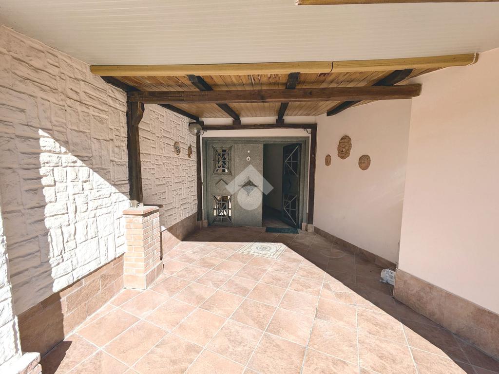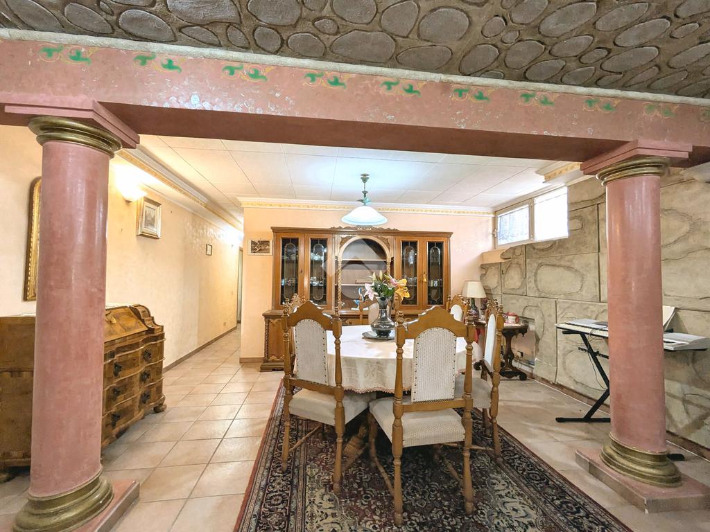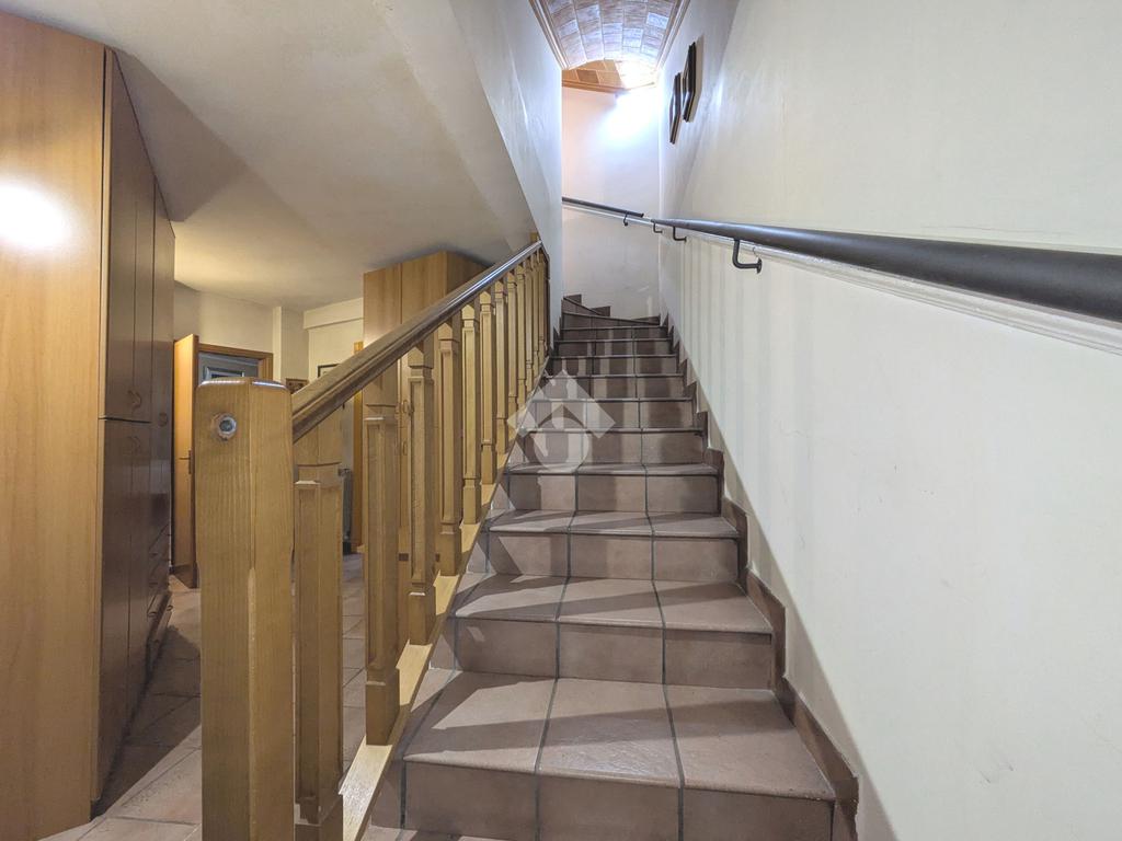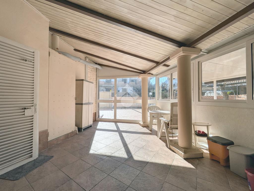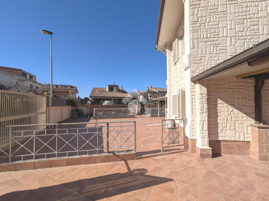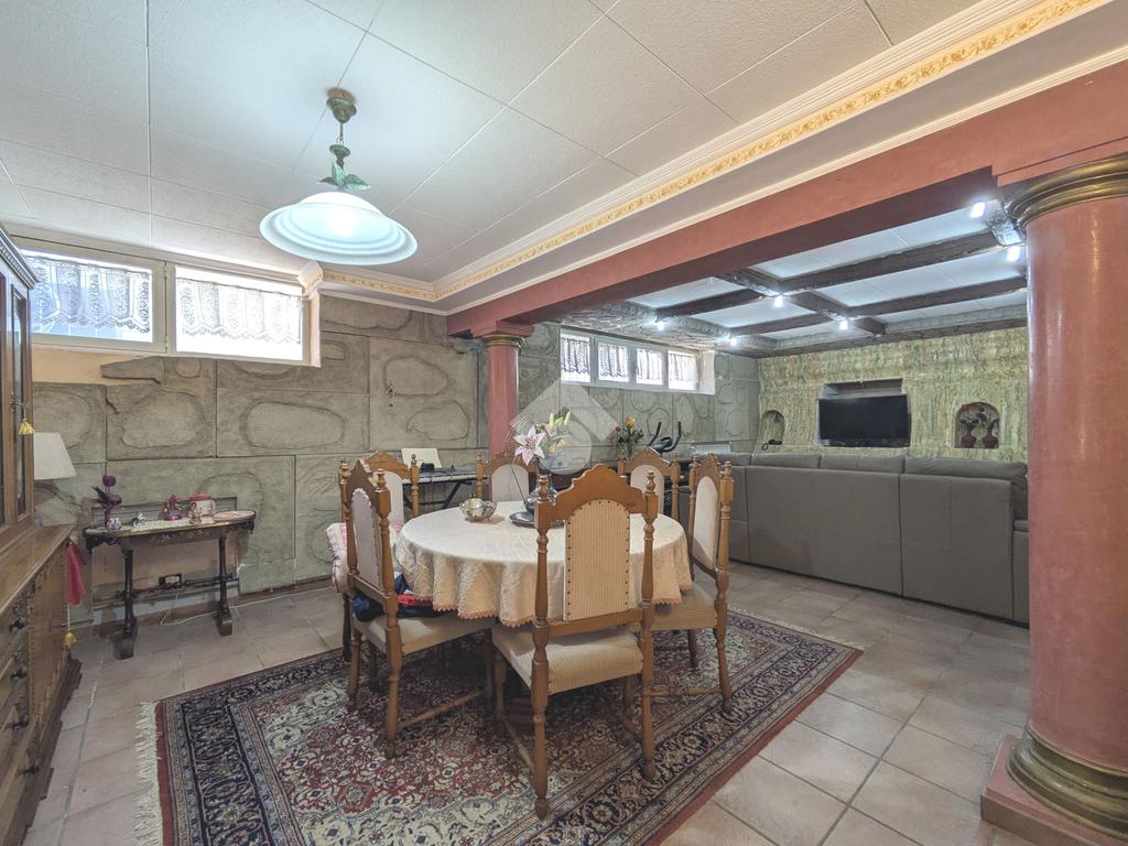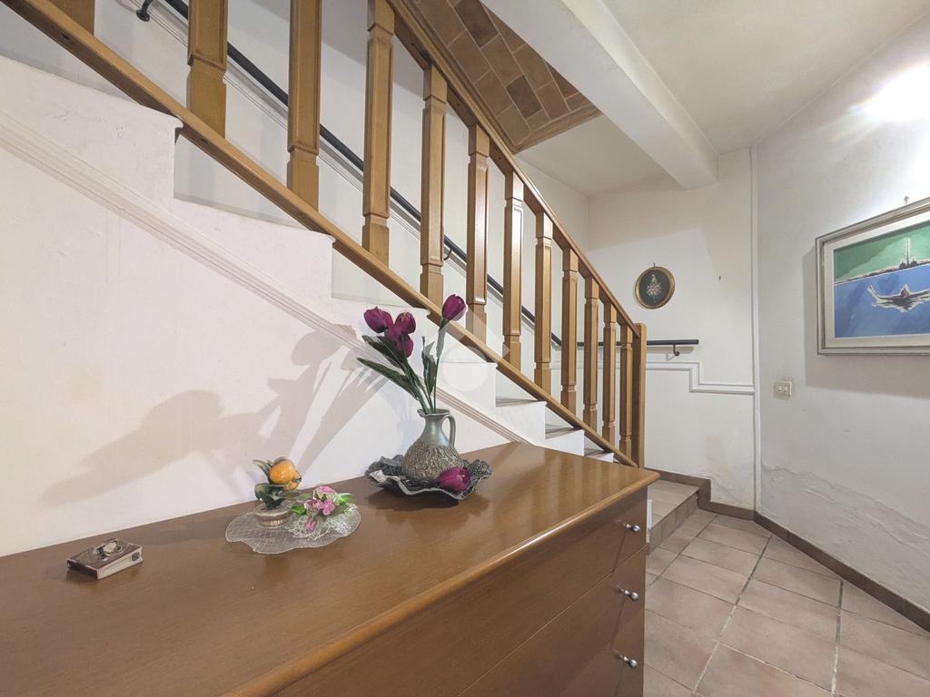 Si accede attraverso un cancello automatico che consente l'entrata sia pedonale che carrabile per più veicoli all'interno del giardino di proprietà. Questa area, prettamente pavimentata, è un ampio giardino di 180 mq, molto soleggiato perché gode di un ottima esposizione (sud- est); da qui si entra all'interno dell'appartamento dove ci accoglie un primo salottino, una camera da letto, un bagno ed un cucinotto. Attraverso una scala in muratura, si accede al piano seminterrato di 80 mq, la sala hobby: qui un comodo disimpegno ci introduce ad un grande soggiorno con angolo cottura, una camera da letto matrimoniale e un secondo bagno.