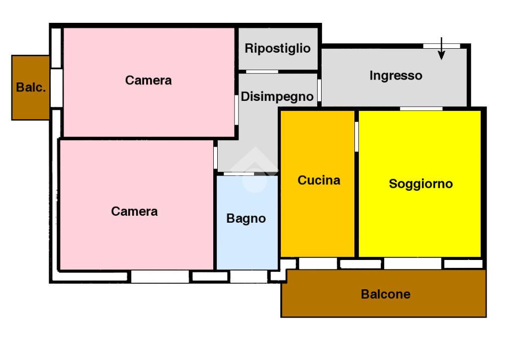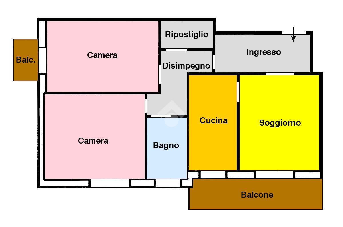 L’immobile si distingue per la distribuzione funzionale degli spazi: un comodo ingresso introduce a un luminoso soggiorno, affiancato da una cucina abitabile. La zona notte comprende due spaziose camere matrimoniali, un bagno finestrato con cabina doccia, disimpegno e pratico ripostiglio. Completano la proprietà due balconi con doppia esposizione, ideali per godere di luce naturale durante tutta la giornata.