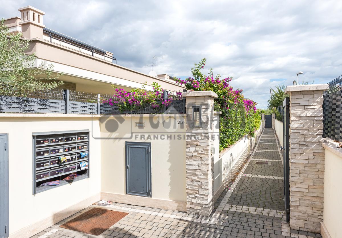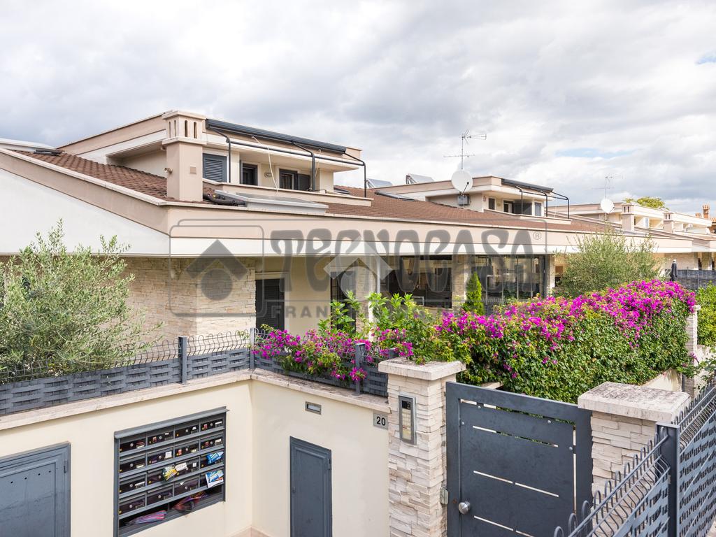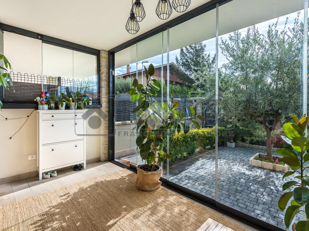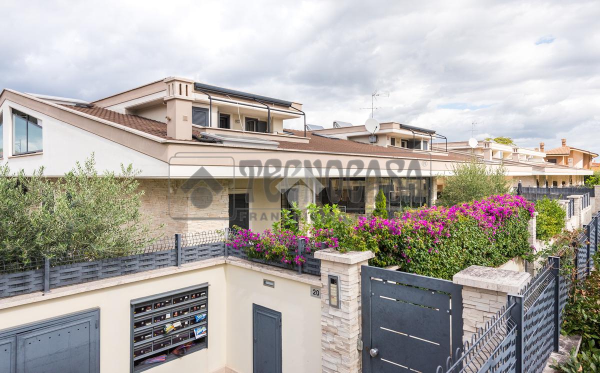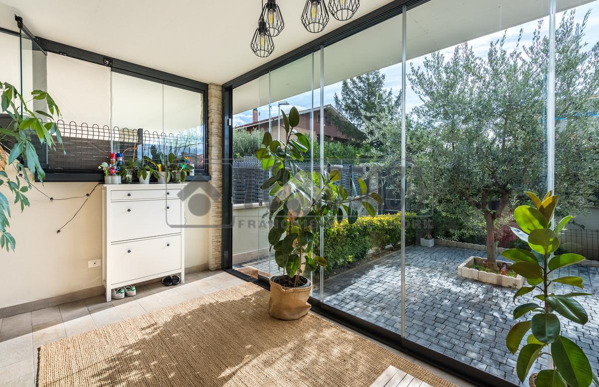 Nel cuore della località Mura dei Francesi a Ciampino, proponiamo un villino a schiera centrale, costruito nel 2017. L'immobile si sviluppa su due livelli: piano terra e 1° piano. Entrando ci accoglie il giardino pavimentato ed uno splendido portico con vetrate. In casa troviamo un luminoso soggiorno con angolo cottura ed il bagno finestrato. Al primo piano, la zona notte comprende una camera matrimoniale non mansardata, una cameretta e uno studio, oltre a un secondo bagno finestrato. La particolarità è che bagno e camera matrimoniale al 1° piano, sono civili abitazioni. Al piano superiore abbiamo anche un terrazzino ed il balcone. Completano la proprietà un posto auto di proprietà, con la possibilità di acquistare anche il box auto. All'interno dell'abitazione troviamo anche aria condizionata in tutte le zone della casa, riscaldamento a pavimento, persiane in ferro e grate antintrusione.