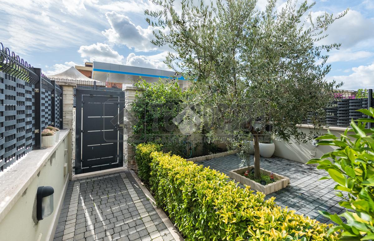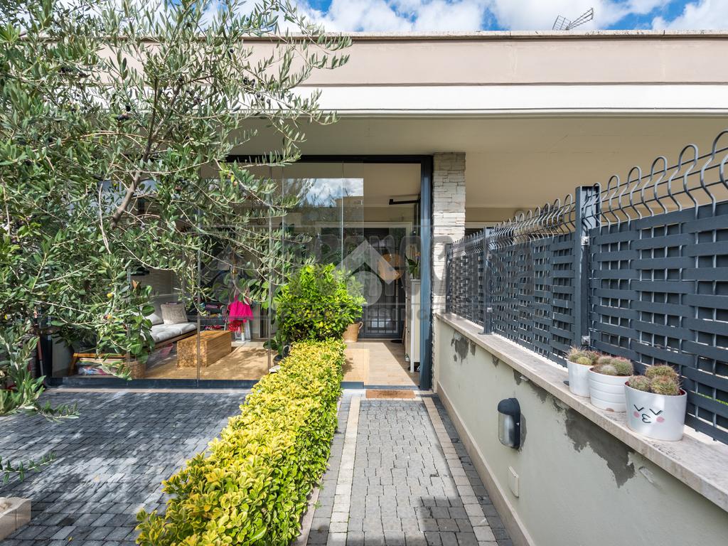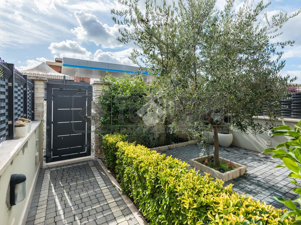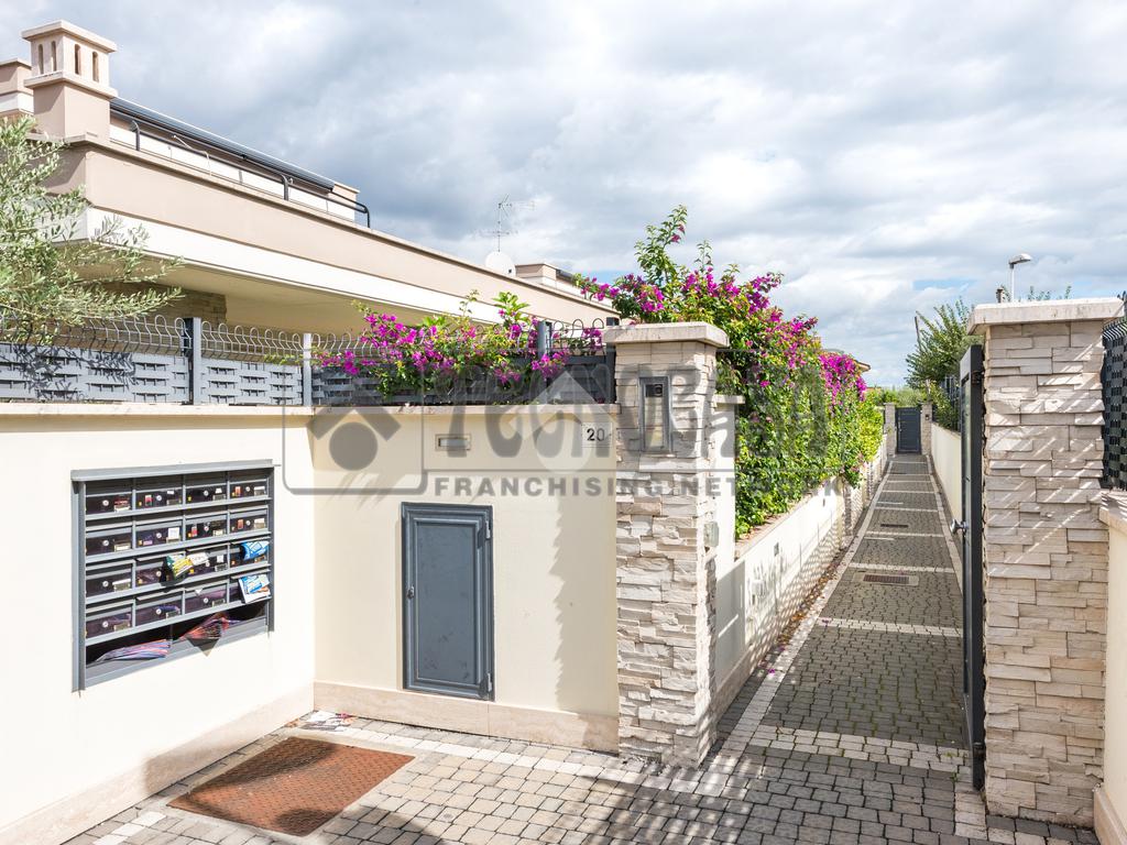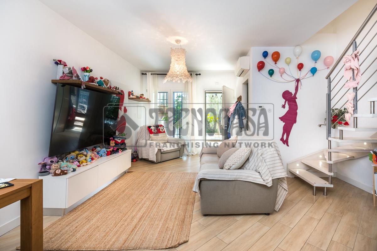 Nel cuore della località Mura dei Francesi a Ciampino, proponiamo un villino a schiera centrale, costruito nel 2017. L'immobile si sviluppa su due livelli: piano terra e 1° piano. Entrando ci accoglie il giardino pavimentato ed uno splendido portico con vetrate. In casa troviamo un luminoso soggiorno con angolo cottura ed il bagno finestrato. Al primo piano, la zona notte comprende una camera matrimoniale non mansardata, una cameretta e uno studio, oltre a un secondo bagno finestrato. La particolarità è che bagno e camera matrimoniale al 1° piano, sono civili abitazioni. Al piano superiore abbiamo anche un terrazzino ed il balcone. Completano la proprietà un posto auto di proprietà, con la possibilità di acquistare anche il box auto. All'interno dell'abitazione troviamo anche aria condizionata in tutte le zone della casa, riscaldamento a pavimento, persiane in ferro e grate antintrusione.