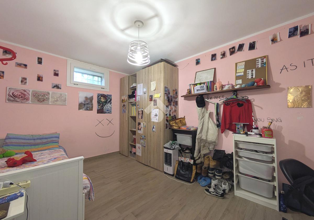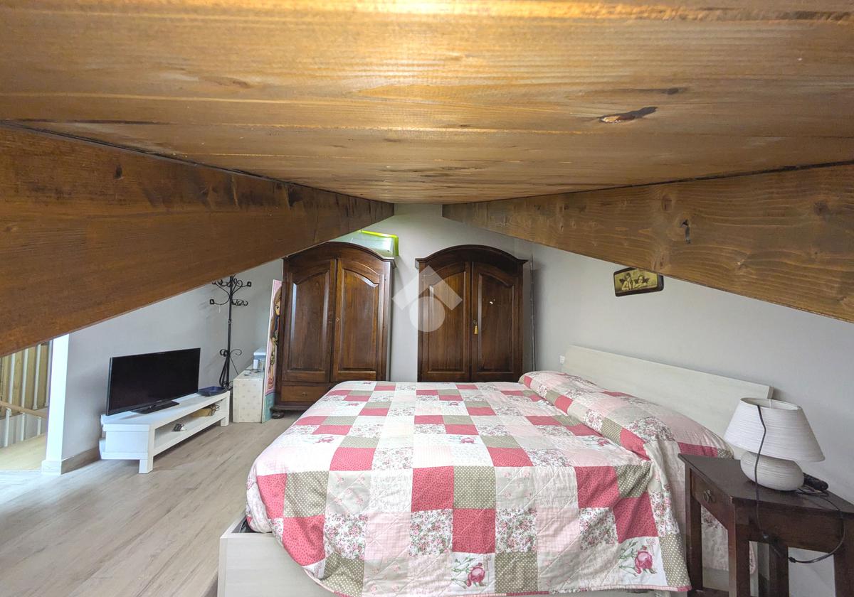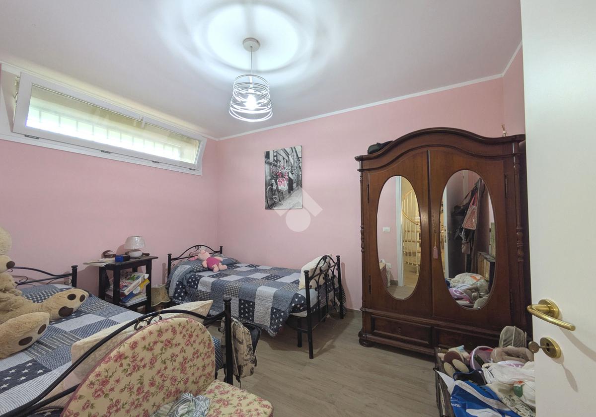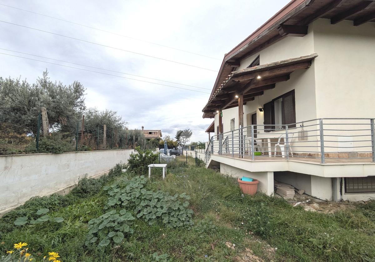La villa al suo interno è posta su tre livelli. Al piano terra abbiamo un ampia zona giorno con bagno, al piano superiore una grande camera, mansardata ai lati con travi a vista, bagnoe comodo disimpegno con uscita su un balcone. Nella sala hobby troviamo, una camera da letto matrimoniale con annessa cabina armadio, due camerette e bagno. Tutta la zona seminterrata dispone di finestre alte a bocca di lupo. Abbiamo infissi in doppio vetro, portoncino blindato, persiane in ferro e riscaldamento a pavimento.