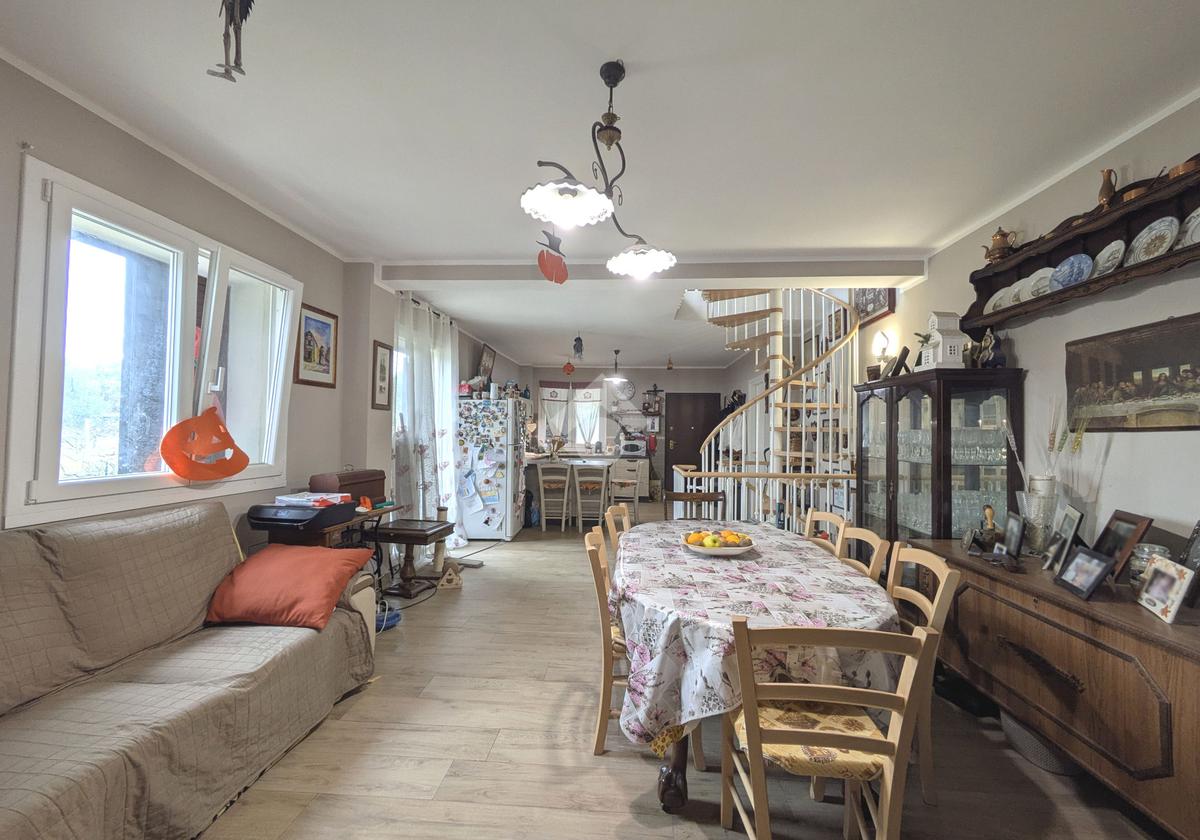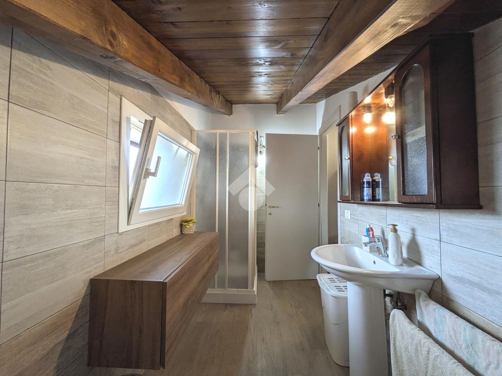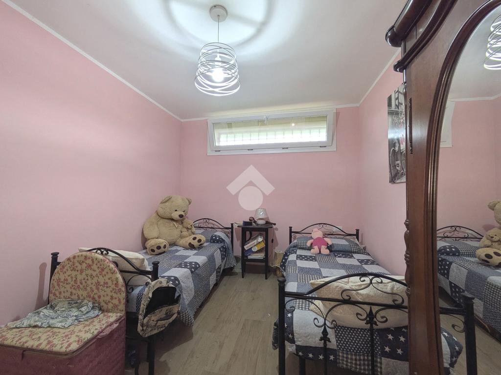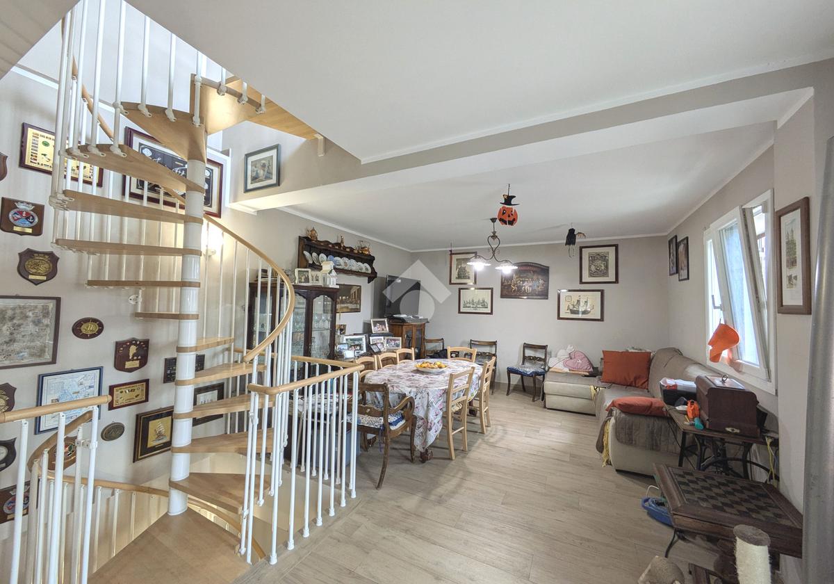 La villa al suo interno è posta su tre livelli. Al piano terra abbiamo un ampia zona giorno con bagno, al piano superiore una grande camera, mansardata ai lati con travi a vista, bagnoe comodo disimpegno con uscita su un balcone. Nella sala hobby troviamo, una camera da letto matrimoniale con annessa cabina armadio, due camerette e bagno. Tutta la zona seminterrata dispone di finestre alte a bocca di lupo. Abbiamo infissi in doppio vetro, portoncino blindato, persiane in ferro e riscaldamento a pavimento.