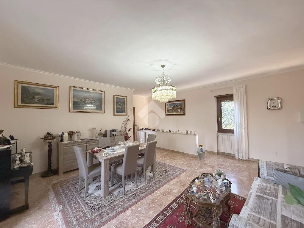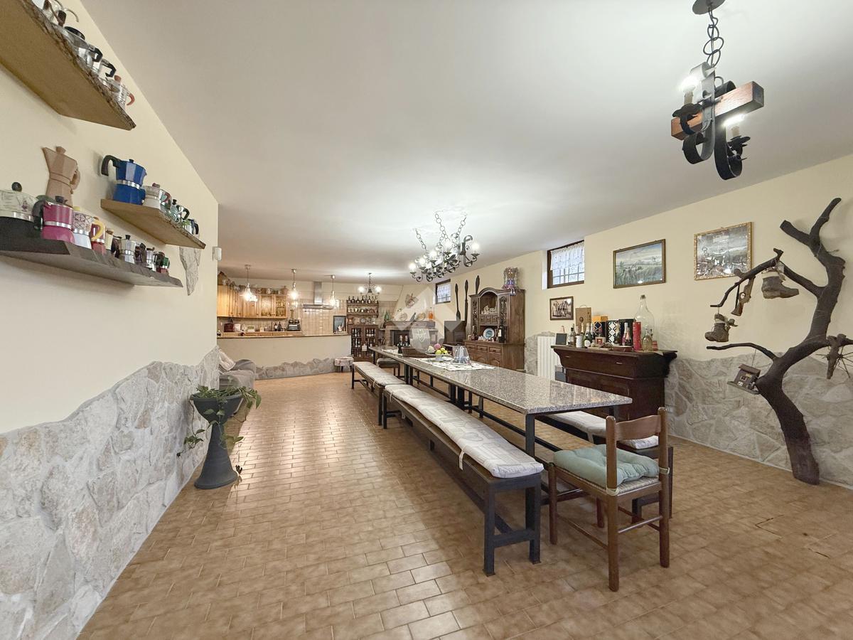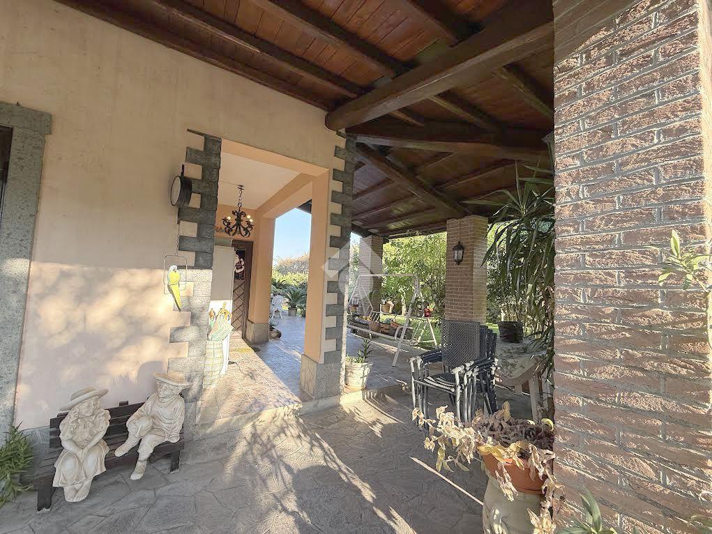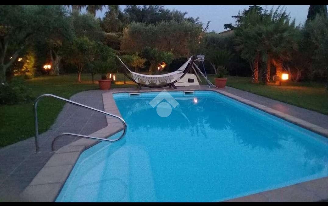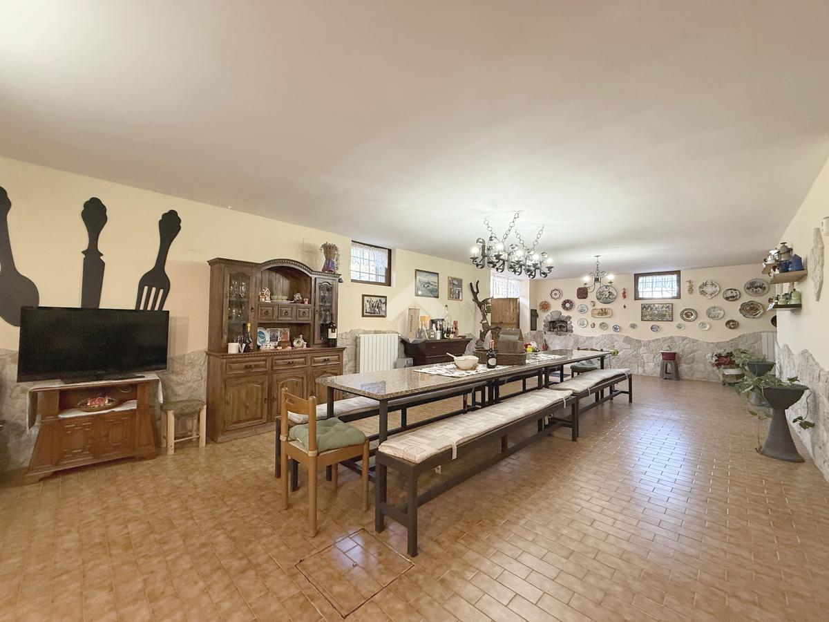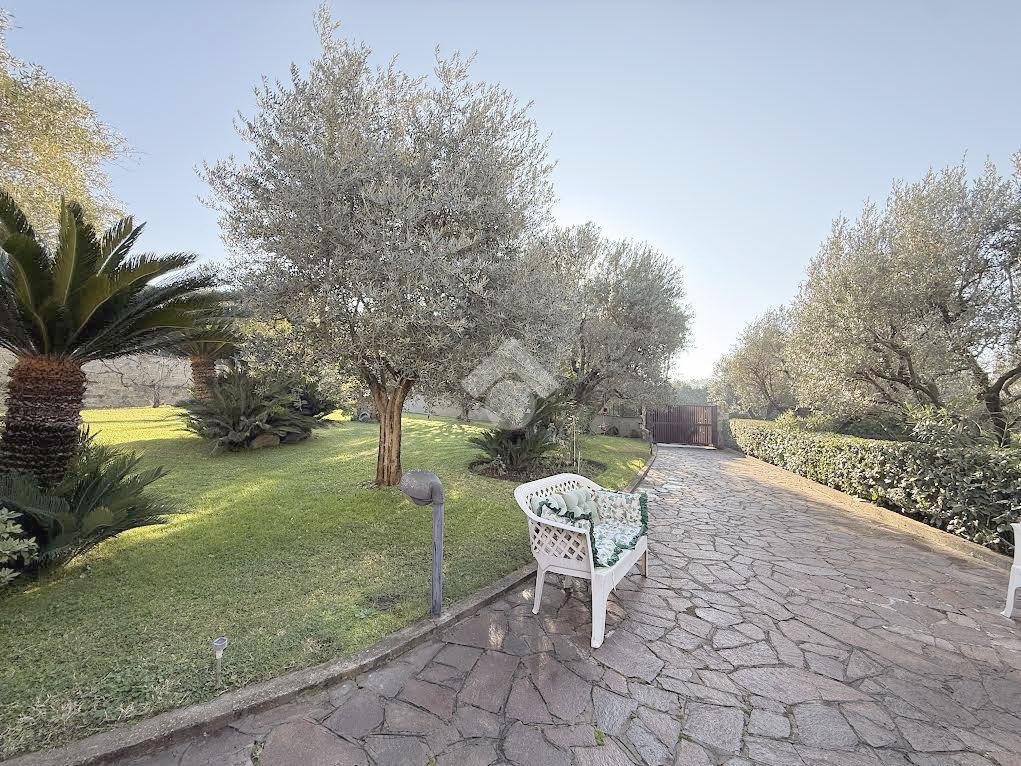 L’immobile, originariamente edificato a metà degli anni 80 si presenta in buono stato di manutenzione. È circondato da un giardino perimetrale di circa 3800 mq, in parte verde ed in parte pavimentato con alberature di pregio come piante da frutto ed un uliveto. La parte pavimentata comprende uno splendido portico che all'occorrenza può essere chiuso da delle vetrate per garantire praticità e facilità di gestione. La casa dispone di un doppio accesso e la possibilità di mettervi anche più macchine all'interno.