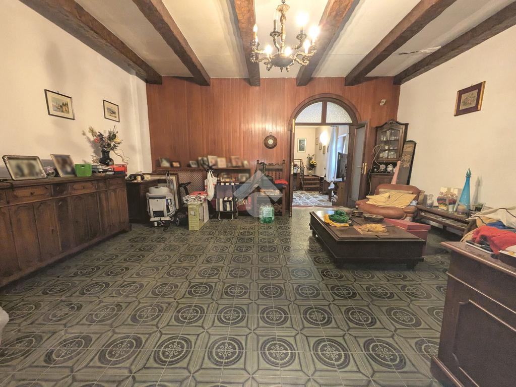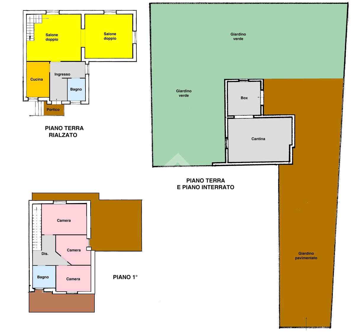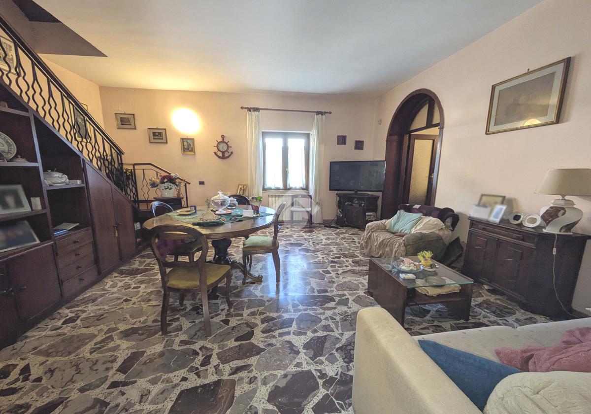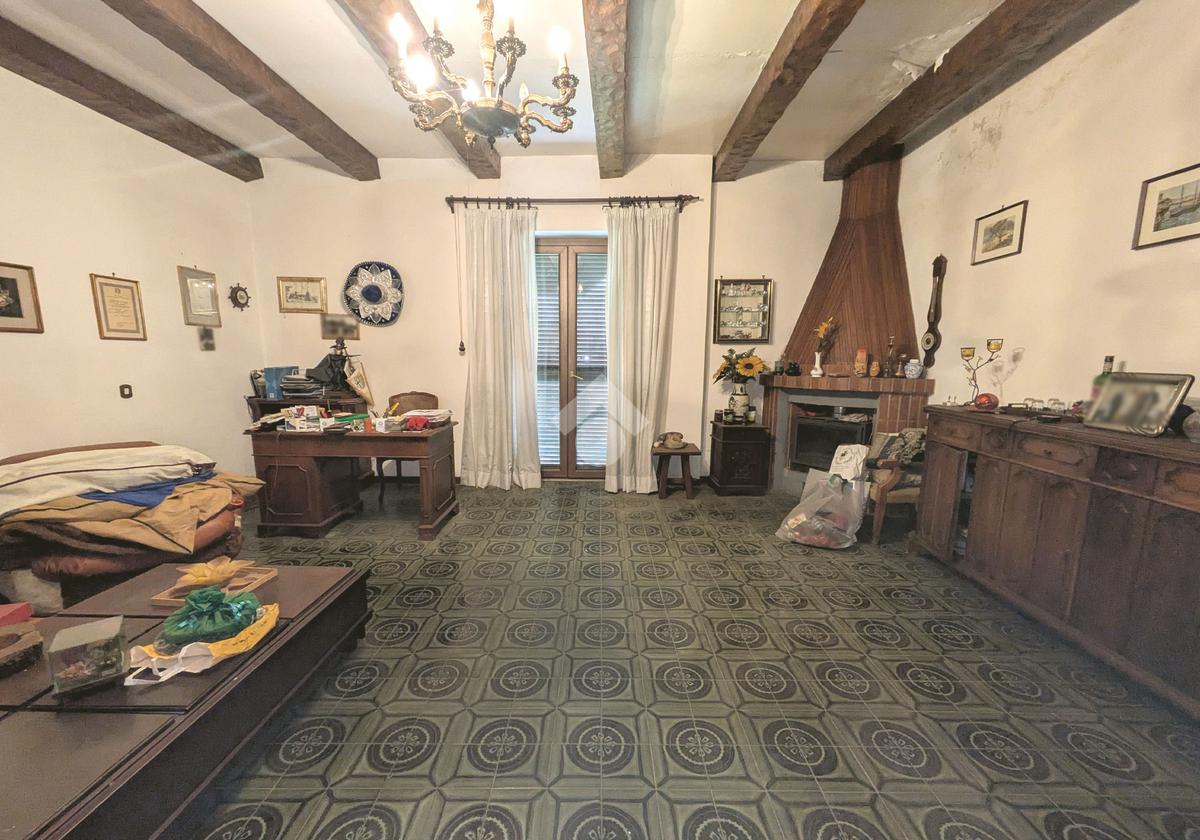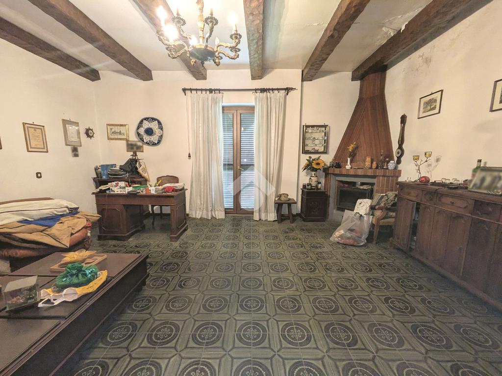 Entrando in casa ci colpisce la divisione degli ambienti,tipicamente degli anni 70: al piano terra abbiamo un ampio ingresso di rappresentanza, la cucina abitabile, un bagno, una ampia sala da pranzo, un secondo salone con camino e soffitto con le travi in legno. Tutti gli ambienti affacciano e/o escono sul giardino.