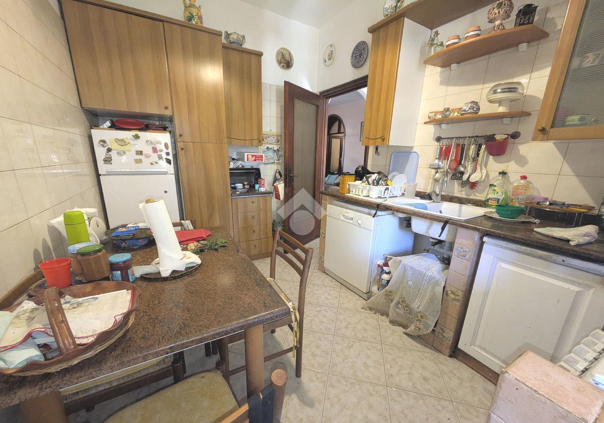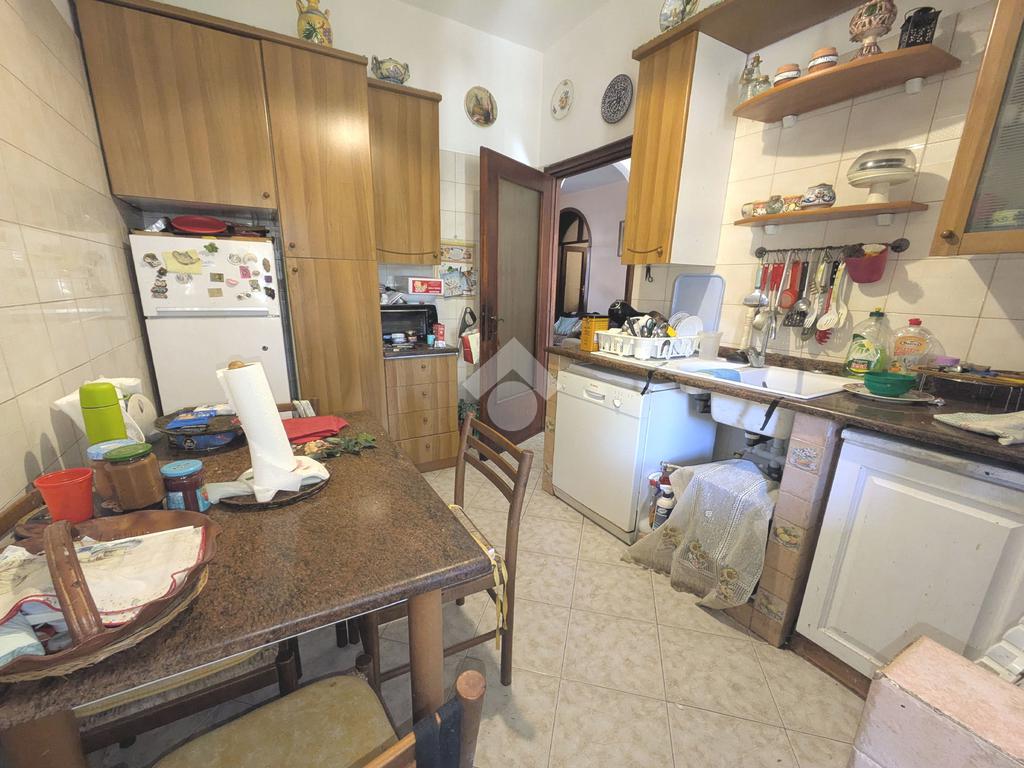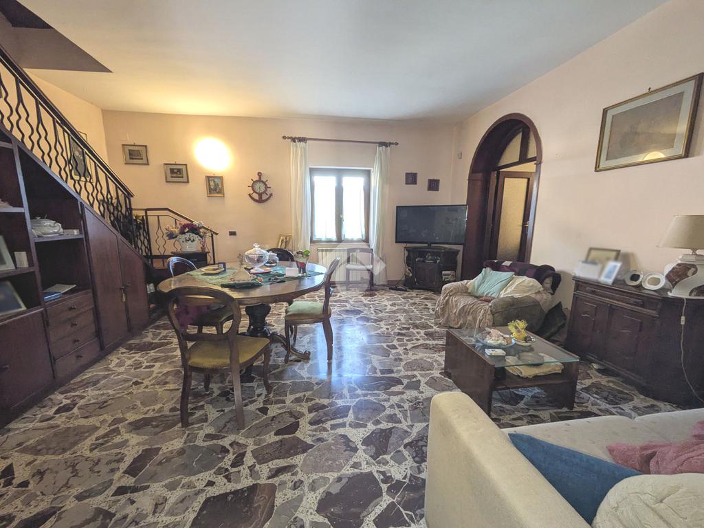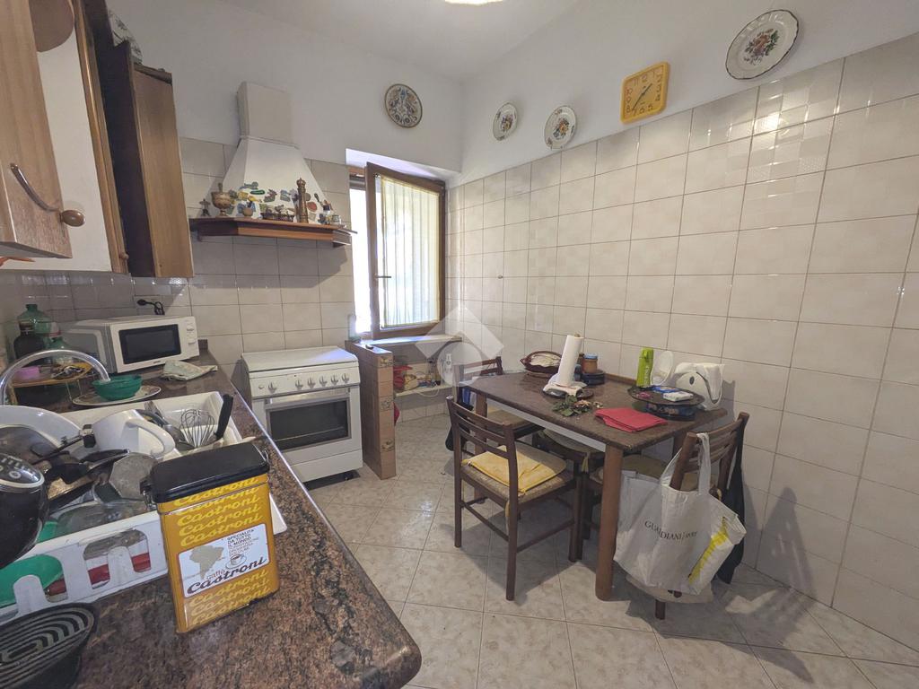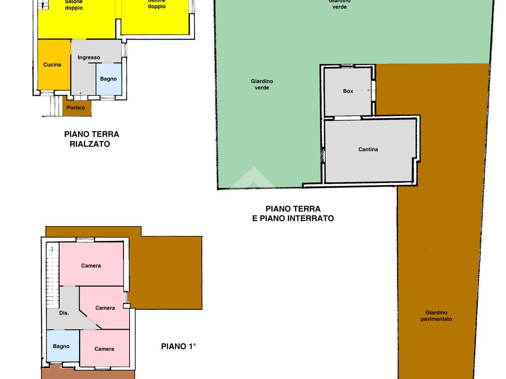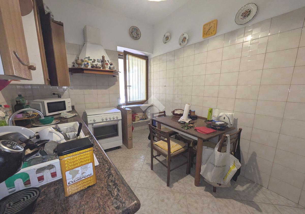 Entrando in casa ci colpisce la divisione degli ambienti,tipicamente degli anni 70: al piano terra abbiamo un ampio ingresso di rappresentanza, la cucina abitabile, un bagno, una ampia sala da pranzo, un secondo salone con camino e soffitto con le travi in legno. Tutti gli ambienti affacciano e/o escono sul giardino.