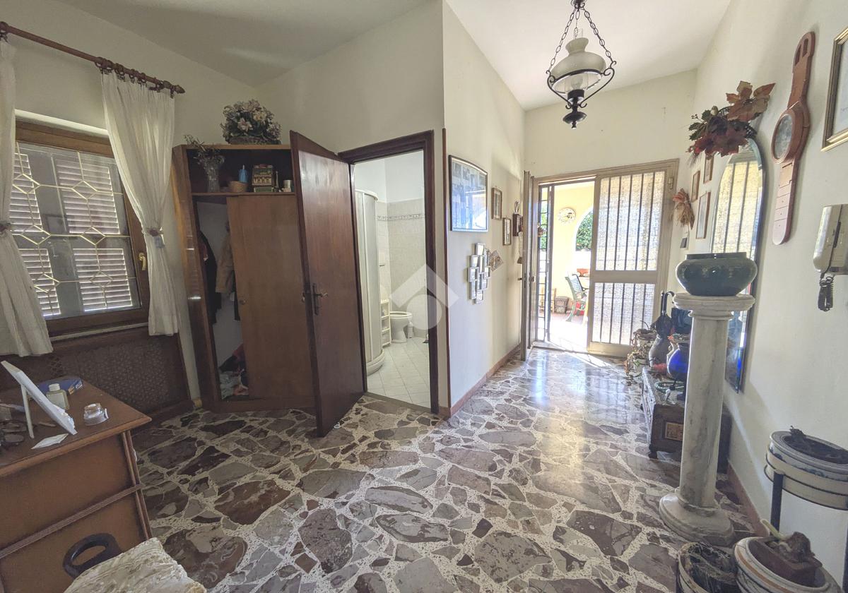 In una tranquilla ma centralissima traversa di via mura dei Francesi, via Portella della Ginestra, una strada chiusa vicino il Bowling, il supermercato Dem, Bar e i ristoranti, siamo lieti di proporvi in vendita una porzione angolare di villa, costruita negli anni '70, e proprio per questo con delle concezioni di spazio che la rendono davvero interessante perchè ormai sempre più rare da trovare.