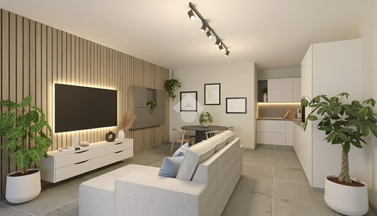 In via Venezia, vicino la scuola, la stazione del treno CASABIANCA, via dei laghi e le attività commerciali di prima necessità sta sorgendo un nuovo complesso edilizio di 11 appartamenti in classe energetica A4, pronto per voi a MARZO 2027! Vieni in ufficio per consultare la progettazione e scegliere la tua nuova casa! Questo appartamento che stai vedendo è il bilocale posto al piano terra, senza barriere architettoniche: la classica divisione degli spazi in ingresso, soggiorno con angolo cottura, camera matrimoniale e bagno è stata studiata per renderlo funzionale e facilmente arredabile da tutte le categorie di acquirenti. Lo spazio esterno sarà un giardino in parte verde e in parte mattonato con loggia di 9 mq e portico di 17. Incluso nel prezzo, un posto auto scoperto di proprietà all'interno dell'area parcheggio chiusa da cancello automatico. Perché acquistare uno di questi immobili? 1) Possibilità di personalizzazione interna. 2) Ogni immobile è dotato di riscaldamento a pavimento alimentato con pompa di calore elettrica con produzione di acqua calda sanitaria, riscaldamento e predisposizione al raffrescamento. In ogni unità immobiliare sarà realizzata la predisposizione dell'impianto di climatizzazione nel soggiorno e nelle camere da letto. Gli infissi saranno con vetro-camera a taglio termico provvisti di persiane in ferro per le camere e grate in ferro per il soggiorno, la cucina e il bagno. 3) Sarà presente un impianto fotovoltaico condominiale con possibilità di acquisto anche per le singole unità abitative. Ogni posto auto avrà la predisposizione per la colonnina di ricarica auto elettrica. 4) Predisposizione impianto di allarme. 5) Tutti gli ambienti sono comodi e facilmente arredabili. E' possibile personalizzare e scegliere i materiali offerti dal capitolato lavori. 6) Un immobile di ultima generazione, antisismica ad alto risparmio energetico con possibilità di accedere al MUTUO GREEN. 7)Dotato di ascensore Consegna prevista MARZO 2027. Il render è puramente indicativo e non costituisce elemento contrattuale.